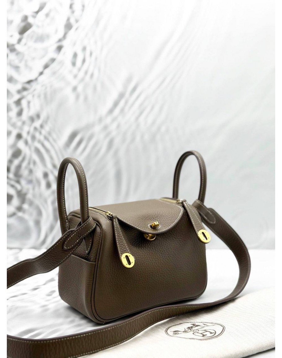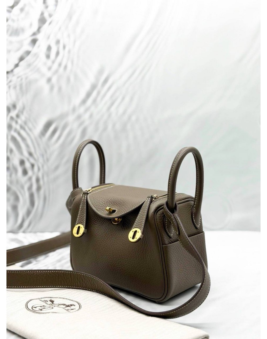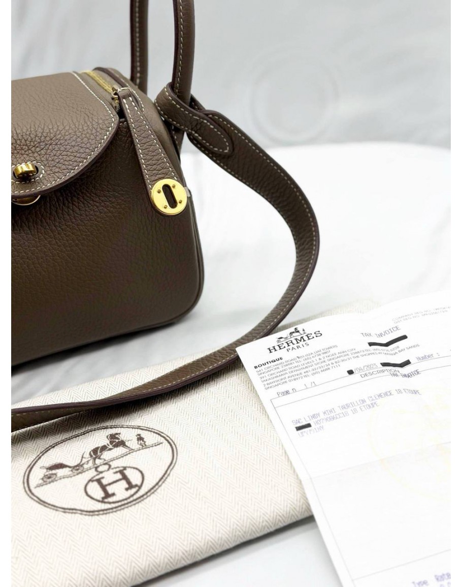 Tags: (BRAND NEW) 2023 HERMES MINI LINDY IN ETOUPE CLEMENCE LEATHER -FULL SET-