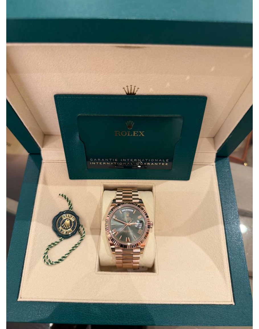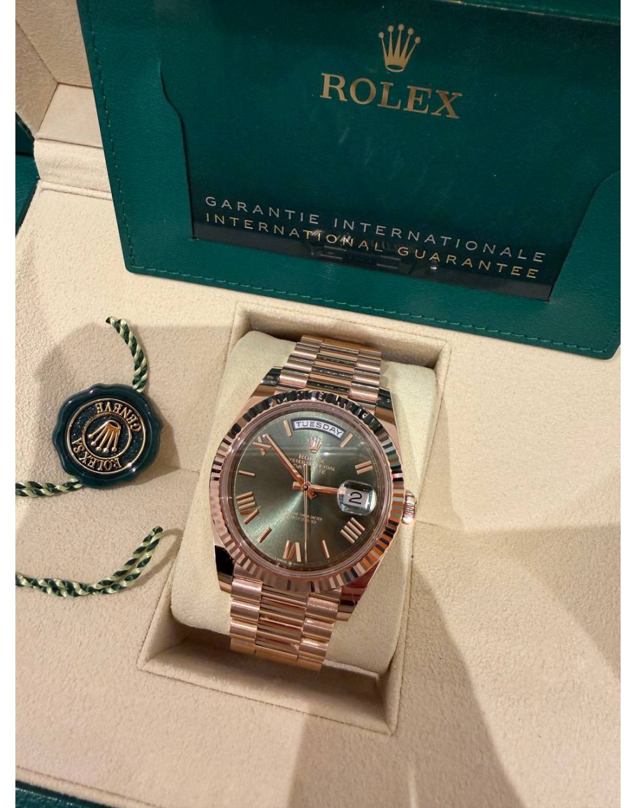 Tags:  (BRAND NEW) 2024 ROLEX DAY-DATE 40 18K 750 ROSE GOLD REF 228235 AVOCADO GREEN DIAL AUTOMATIC WATCH -FULL SET-