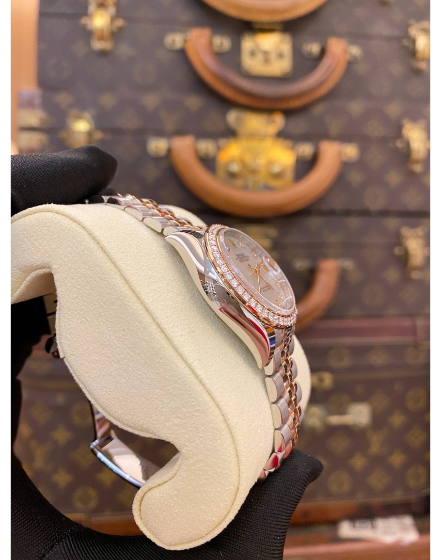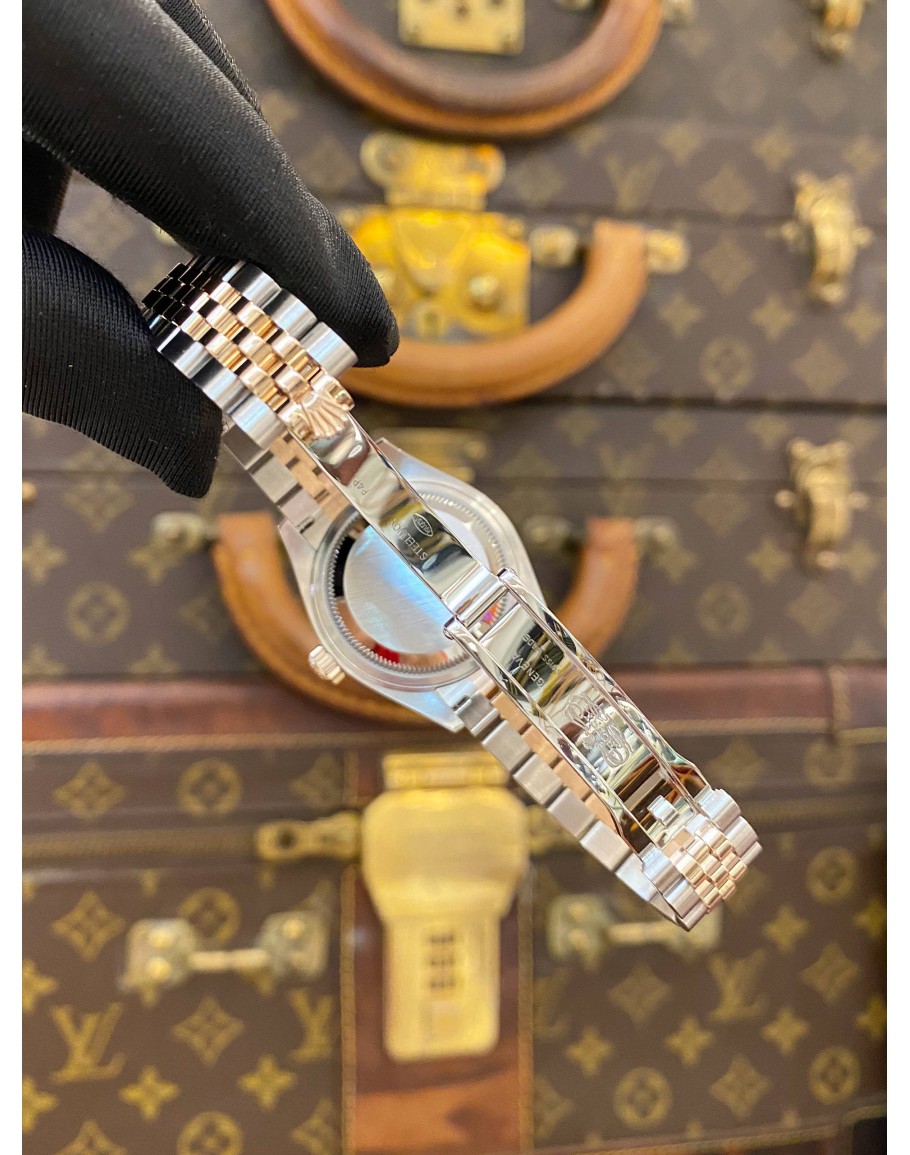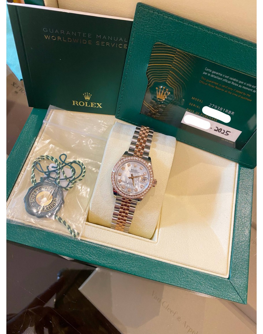 Tags:  (BRAND NEW) 2025 ROLEX LADY DATEJUST 28 FACTORY DIAMOND HALF 18K 750 ROSE GOLD JUBILEE REF 279381RBR WHITE MOTHER OF PEARL DIAMOND DIAL AUTOMATIC WATCH -FULL SET-