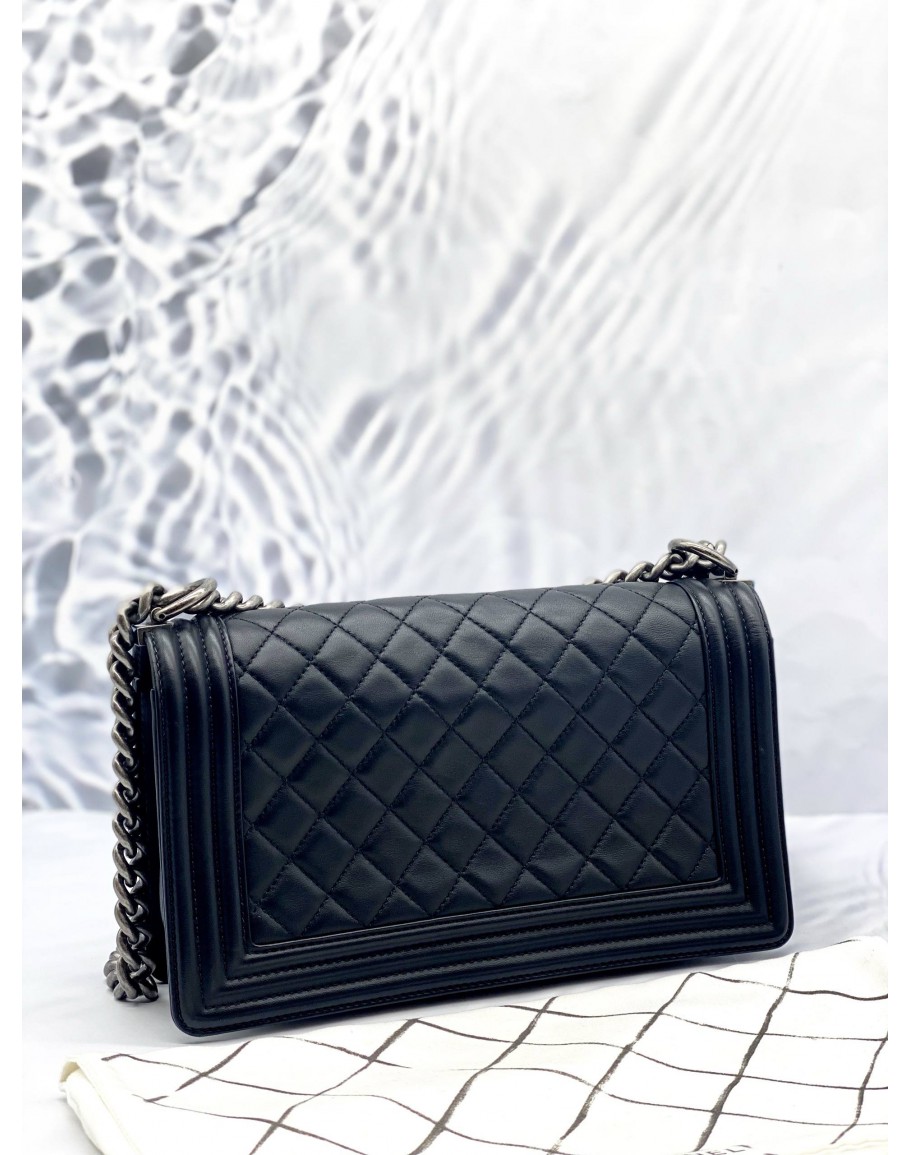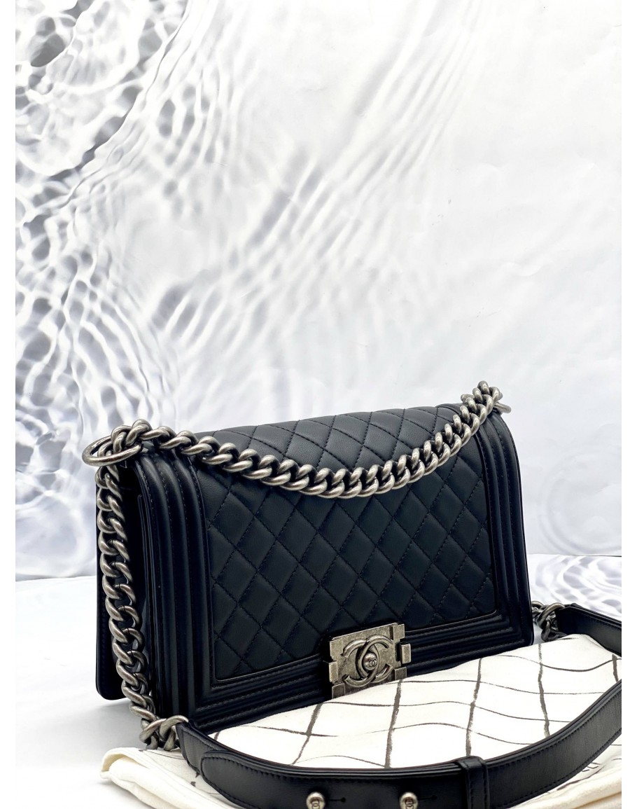 Tags:  (LIKE NEW) CHANEL BOY MEDIUM SHOULDER BAG IN BLACK LAMBSKIN LEATHER -FULL SET-