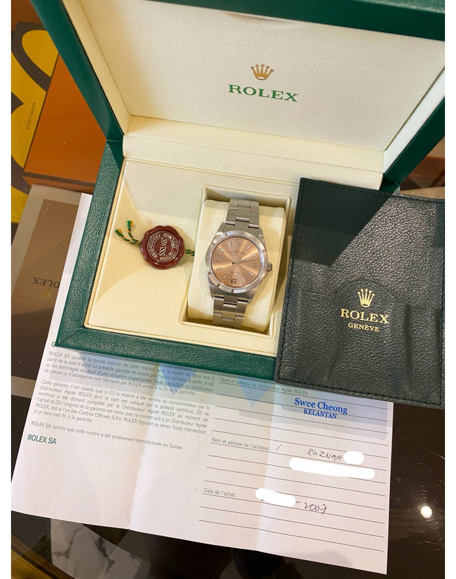 Tags:  (LIKE NEW) 2007 ROLEX OYSTER PERPETUAL AIR-KING PRECISION REF 14010M PINK DIAL 34MM AUTOMATIC WATCH -FULL SET-