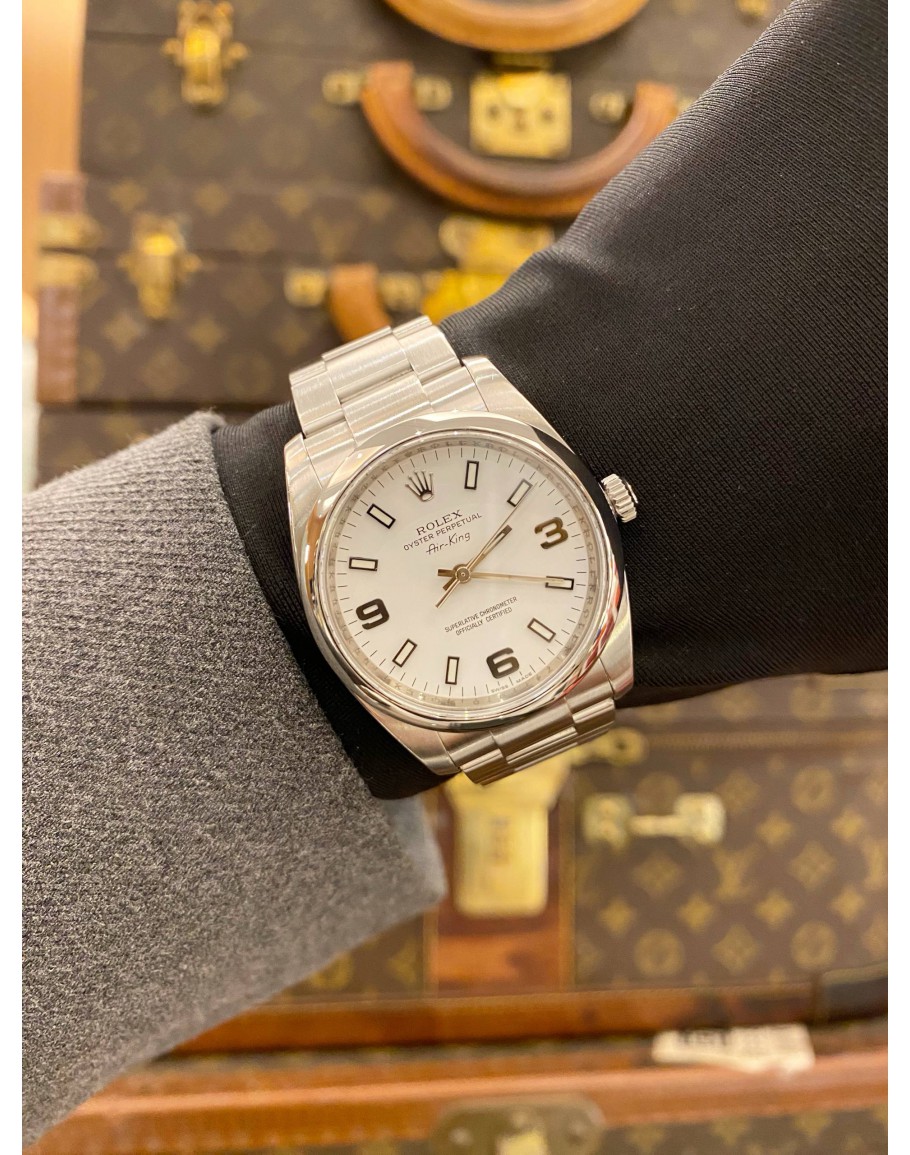 Tags: (LIKE NEW) 2010 ROLEX OYSTER PERPETUAL AIR KING REF 114200 WHITE DIAL 34MM AUTOMATIC WATCH