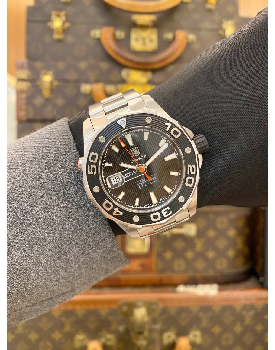 (LIKE NEW) 2013 TAG HEUER AQUARACER 500M 34TH ANNIVERSARY AMERICA’S CUP DEFENDER LIMITED EDITION REF WAJ2119 BLACK DIAL 43MM AUTOMATIC WATCH -FULL SET-