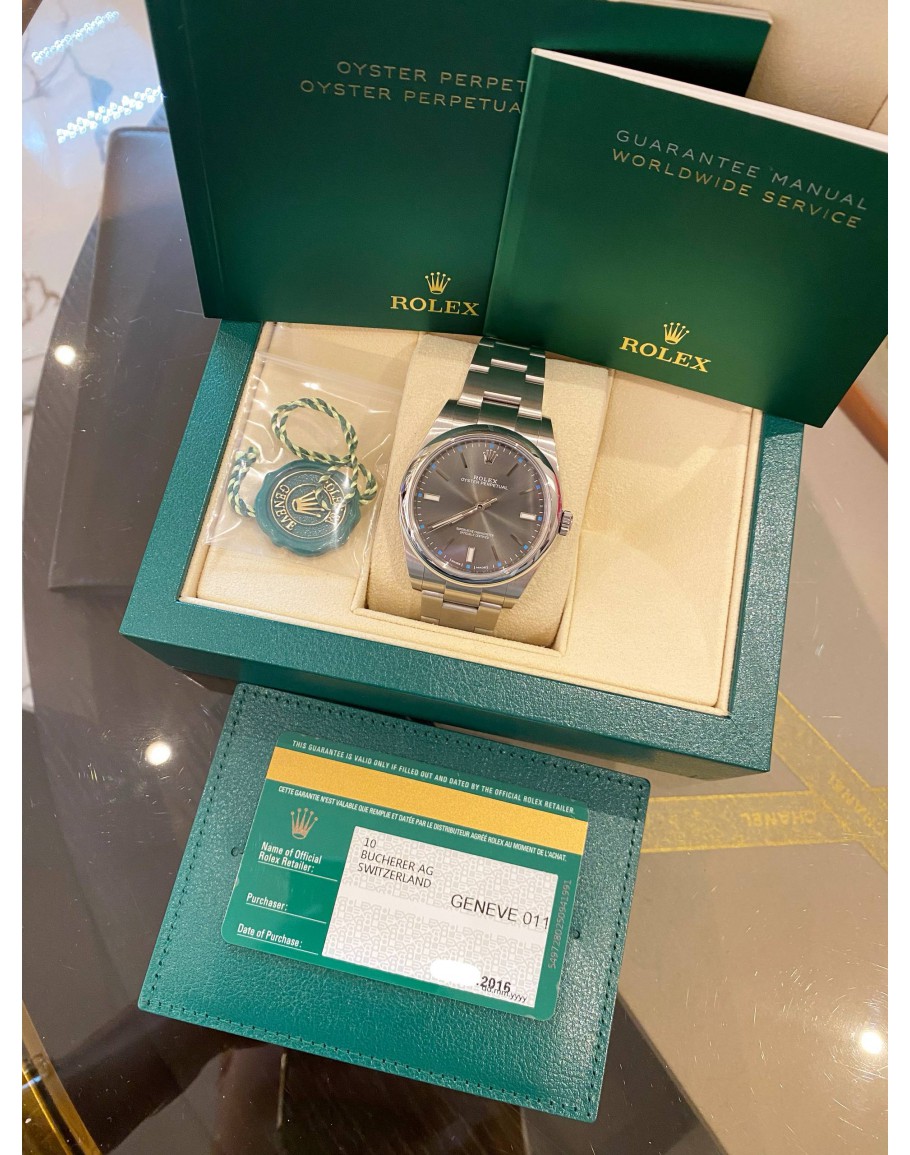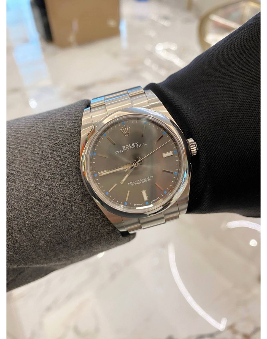 Tags: (LIKE NEW) 2016 ROLEX OYSTER PERPETUAL 39 REF 114300 RHODIUM DIAL 39MM AUTOMATIC WATCH -FULL SET-