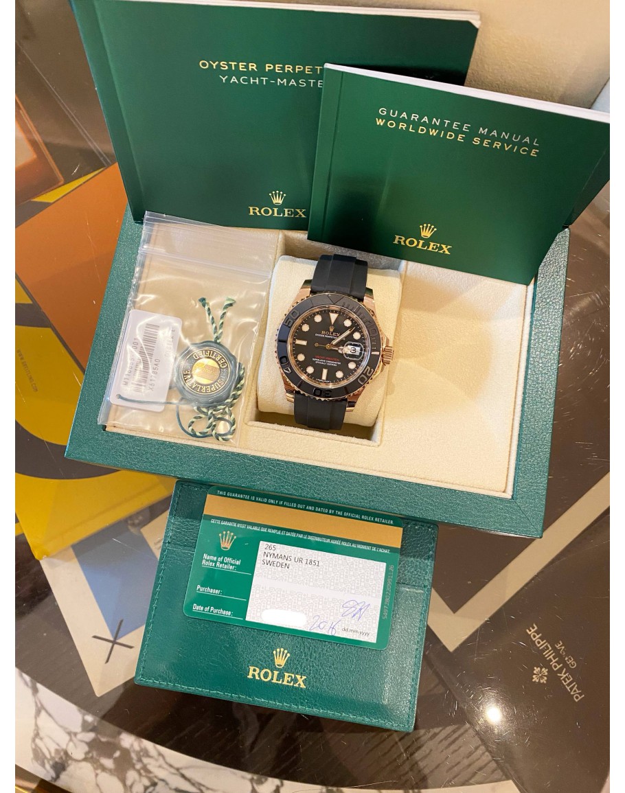 (LIKE NEW) 2016 ROLEX YACHT-MASTER 40 18K 750 ROSE GOLD REF 116655 BLACK DIAL 40MM AUTOMATIC WATCH -FULL SET-