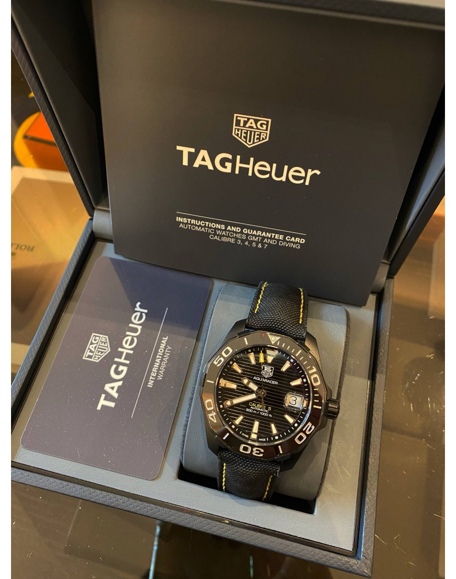 Tags:  (LIKE NEW) 2019 TAG HEUER AQUARACER 300M CALIBRE 5 REF WAY218A BLACK PVD 41MM AUTOMATIC WATCH -FULL SET-