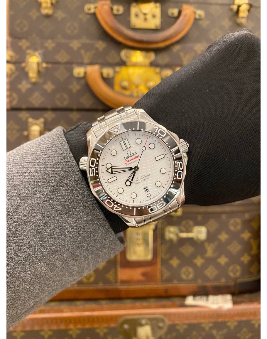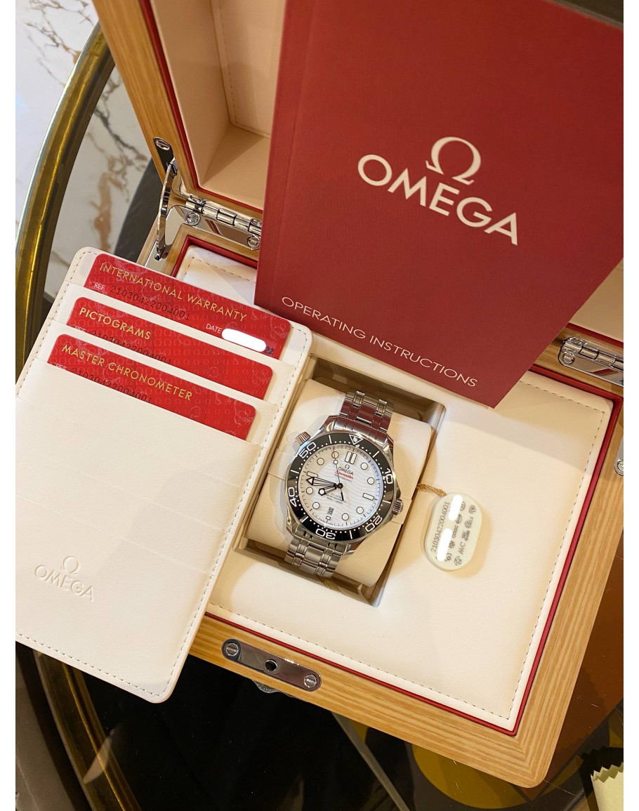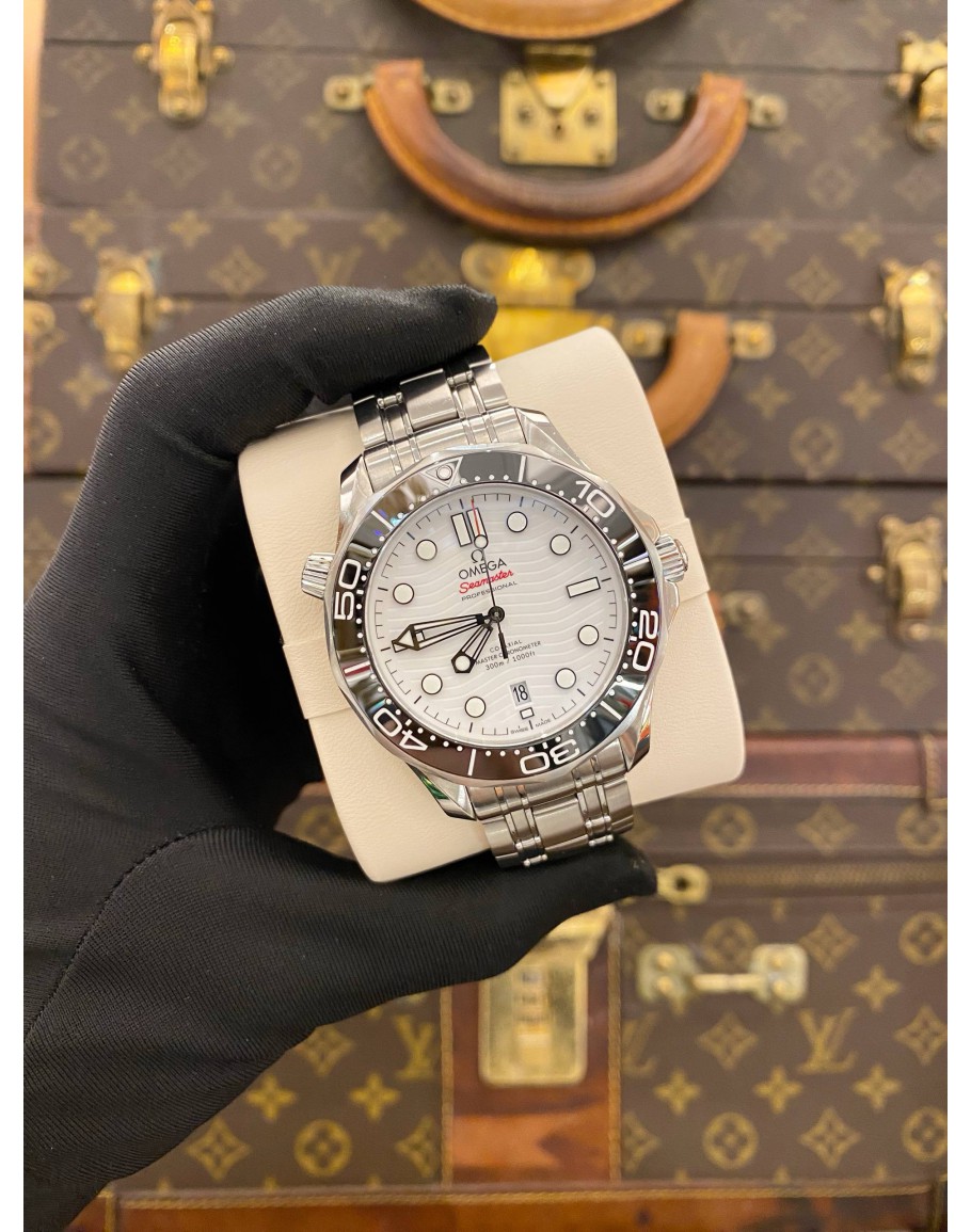 (LIKE NEW) 2022 OMEGA SEAMASTER DIVER 300M CO-AXIAL MASTER CHRONOMETER REF 210.30.42.20.04.001 WHITE DIAL 42MM AUTOMATIC WATCH -FULL SET-