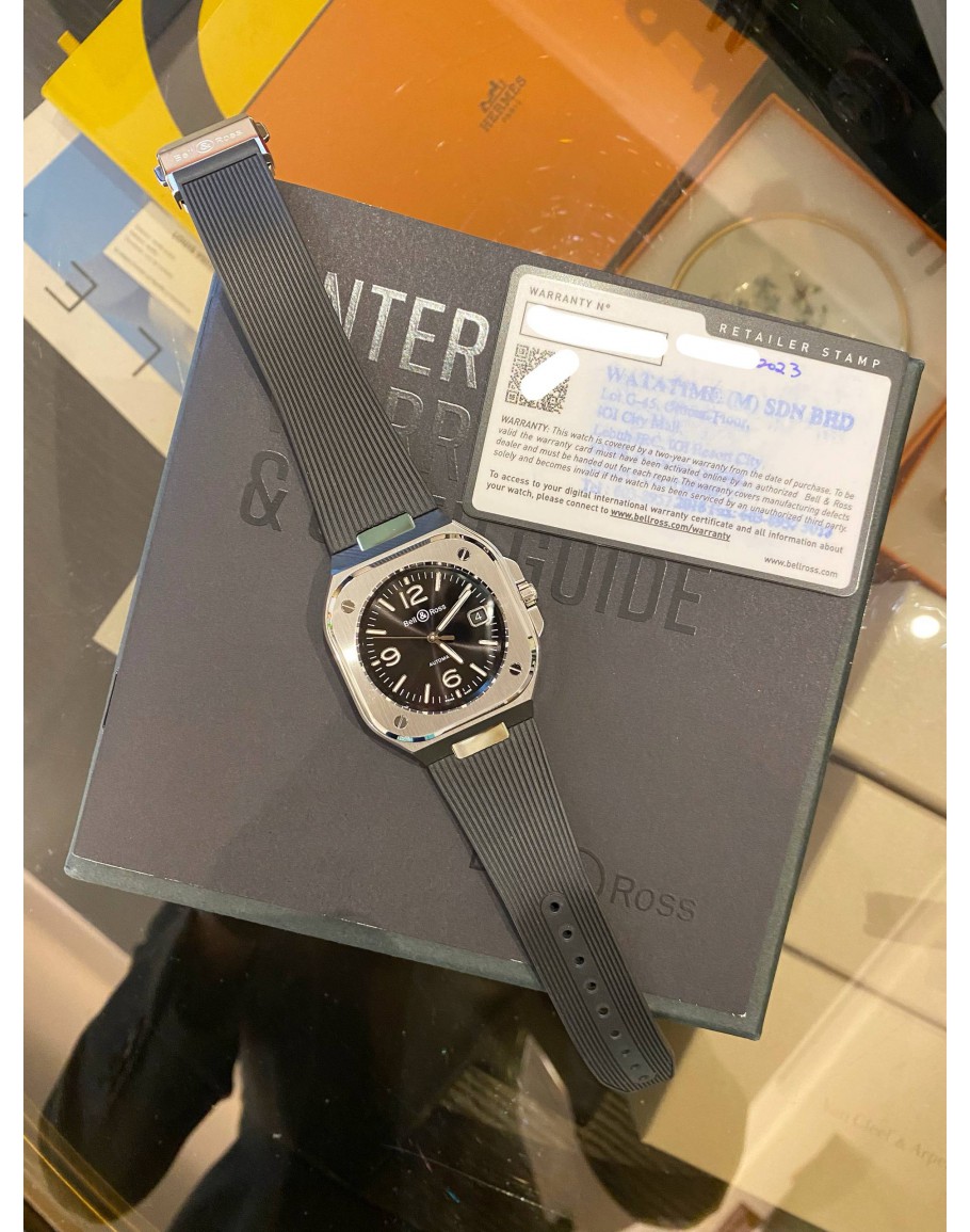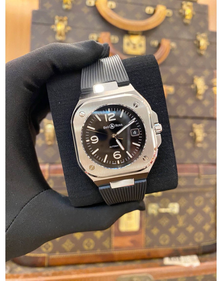 (LIKE NEW) 2023 BELL & ROSS BR05 BLACK STEEL REF BR05A-BL-ST/SRB BLACK DIAL 40MM AUTOMATIC WATCH -FULL SET-