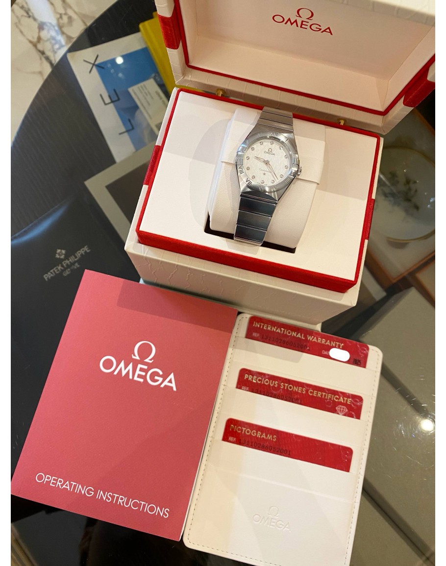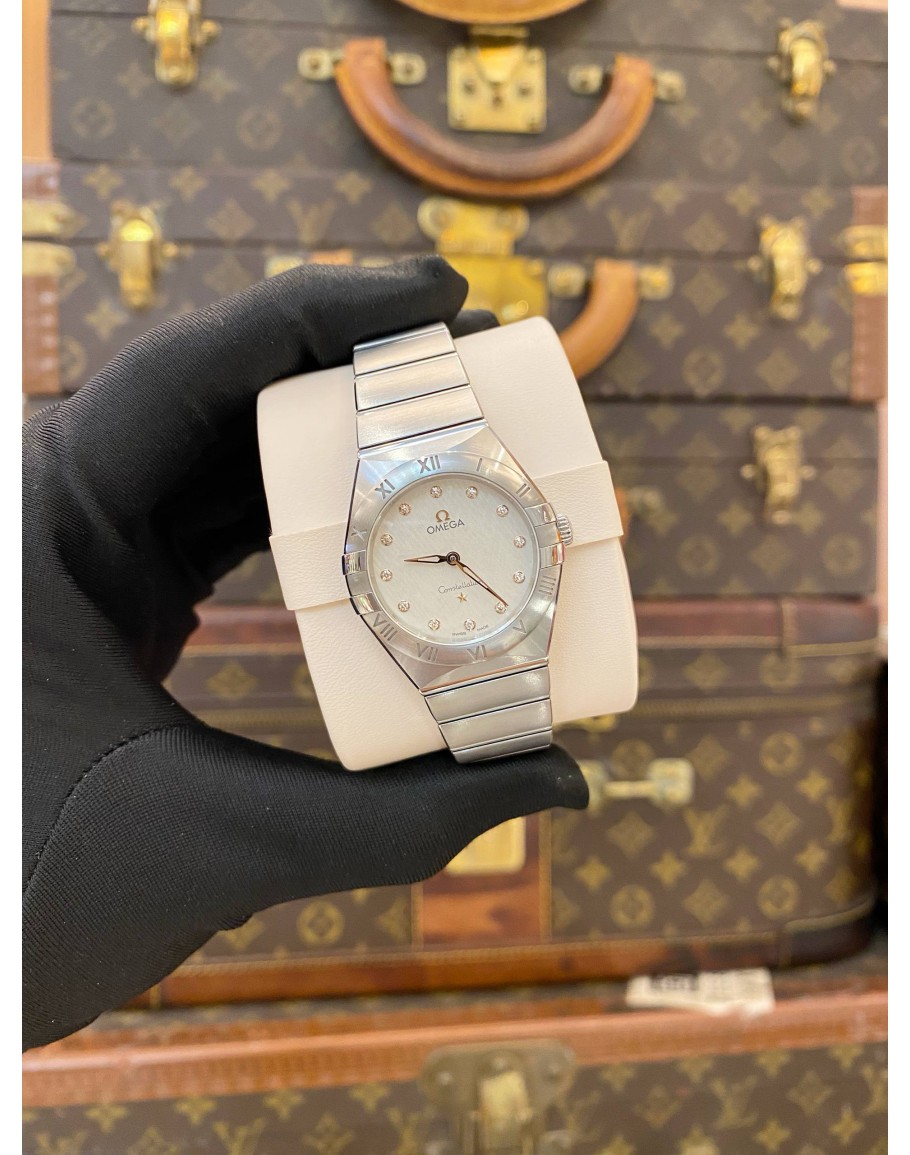 (LIKE NEW) 2025 OMEGA CONSTELLATION MANHATTAN REF 131.10.28.60.52.001 SILVER DIAMOND DIAL 28MM QUARTZ WATCH -FULL SET-