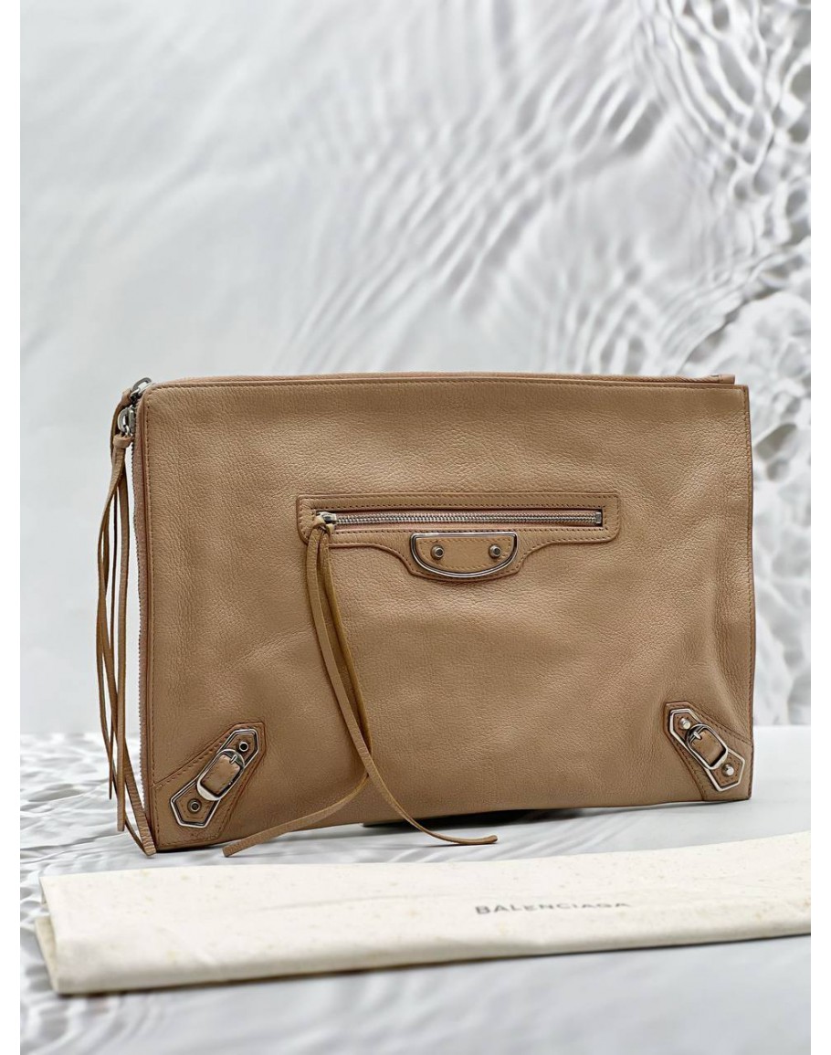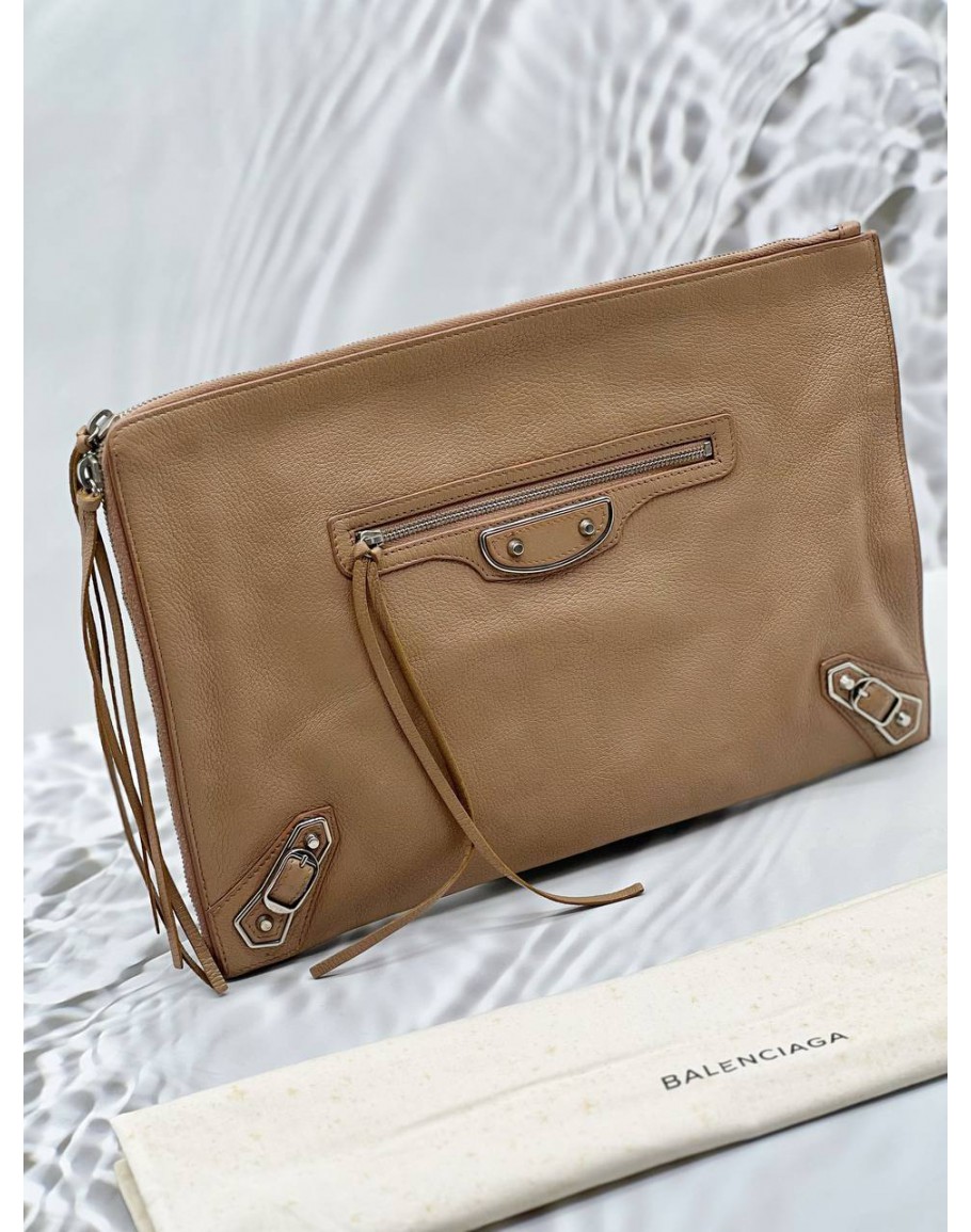 Tags:  (LIKE NEW) BALENCIAGA EDGE CLUTCH IN BEIGE LEATHER