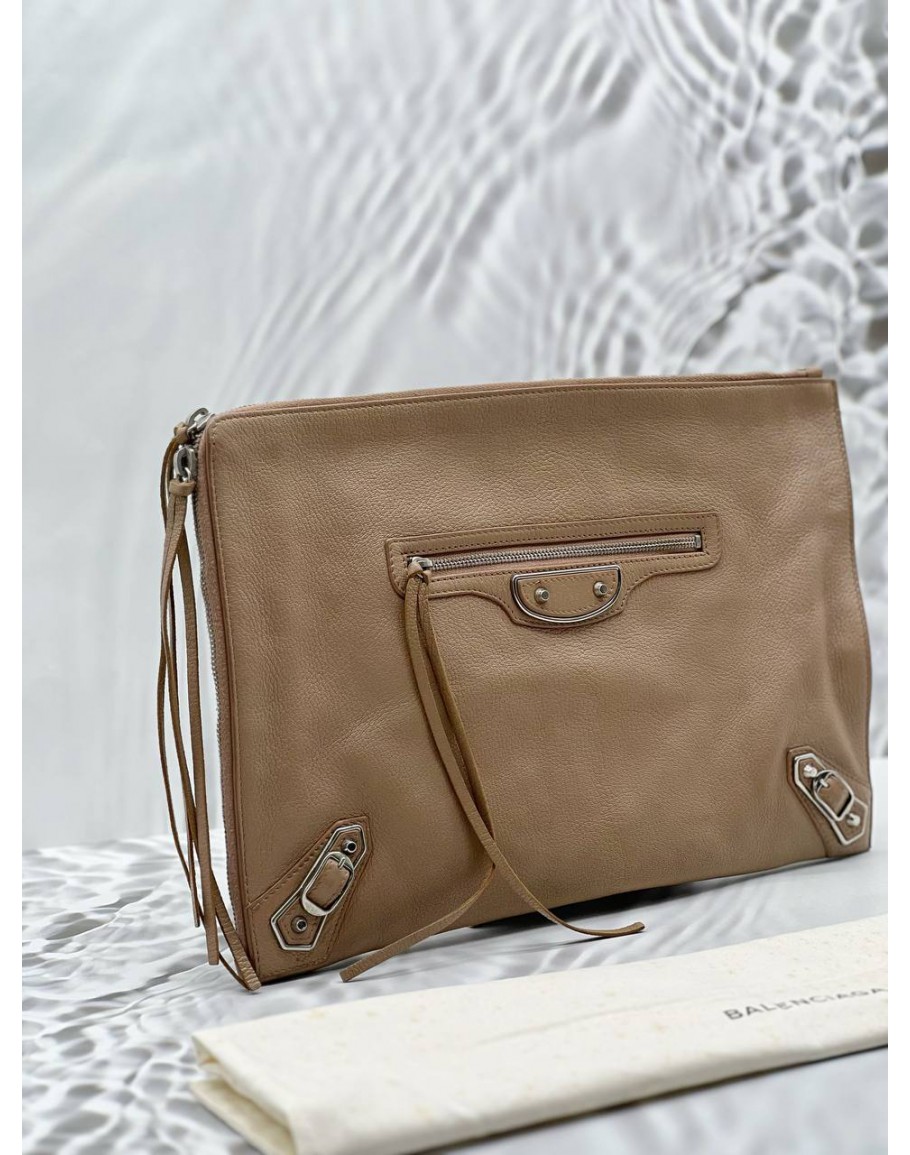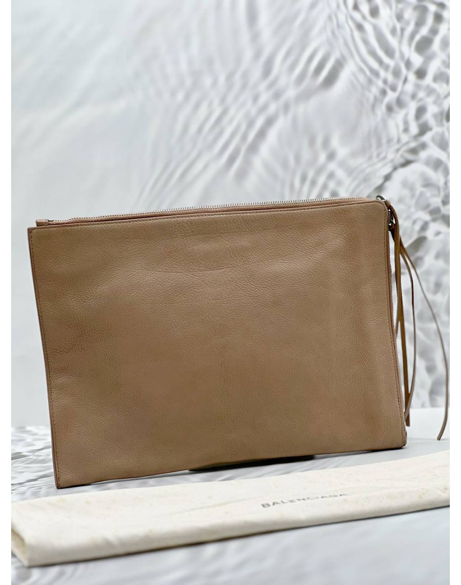(LIKE NEW) BALENCIAGA EDGE CLUTCH IN BEIGE LEATHER