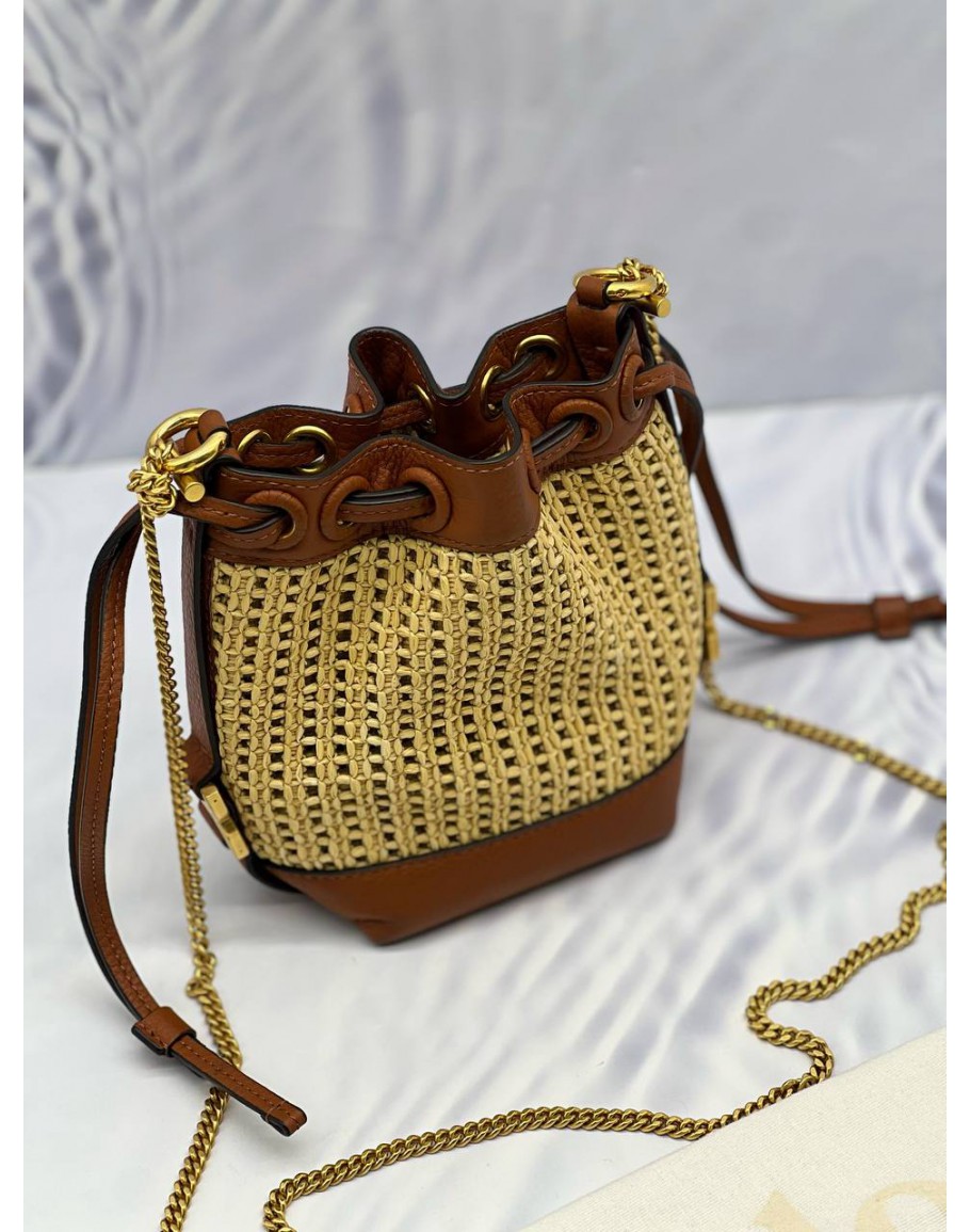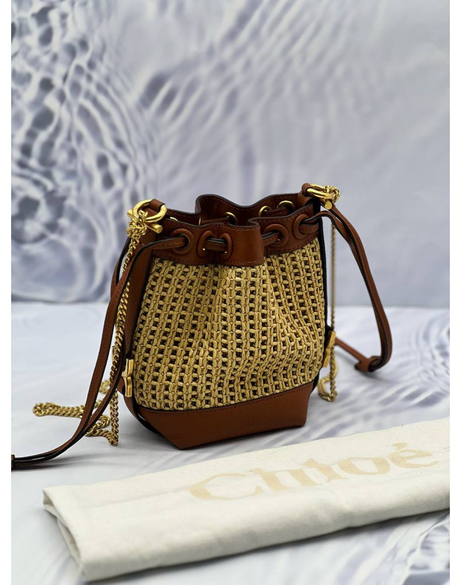 Tags: (LIKE NEW) CHLOE MARCIE MICRO RAFFIA BUCKET BAG IN BEIGE WOVEN WITH BROWN LEATHER