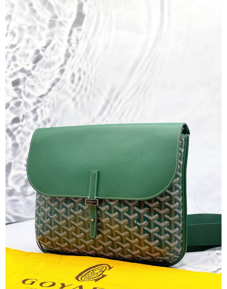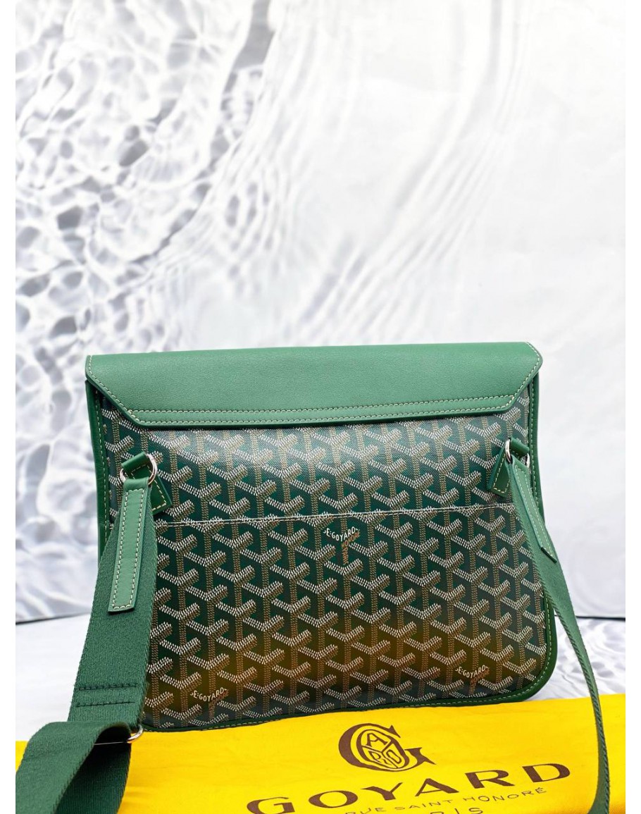 Tags: (LIKE NEW) GOYARD COURSIER MESSENGER BAG IN GREEN GOYARDINE CANVAS WITH CHEVROCHES CALFSKIN LEATHER