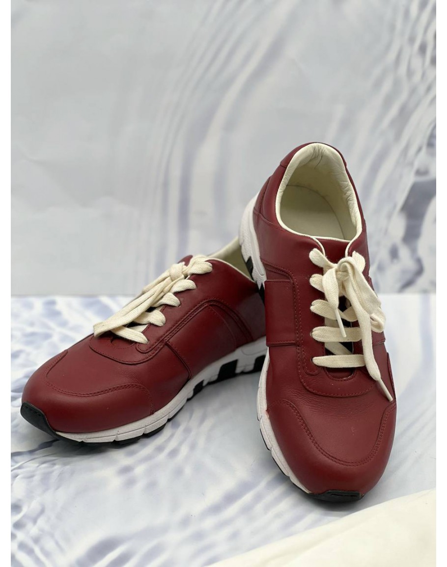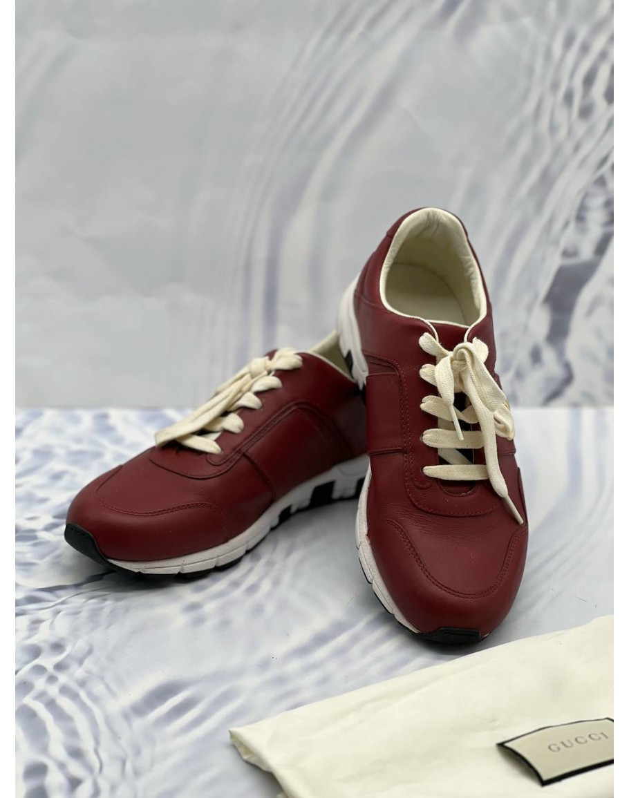(LIKE NEW) GUCCI GG INTERLOCKING LOW TOP SNEAKERS SIZE 38 IN MAROON CALFSKIN LEATHER