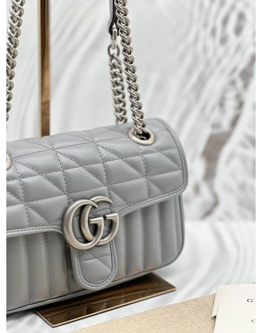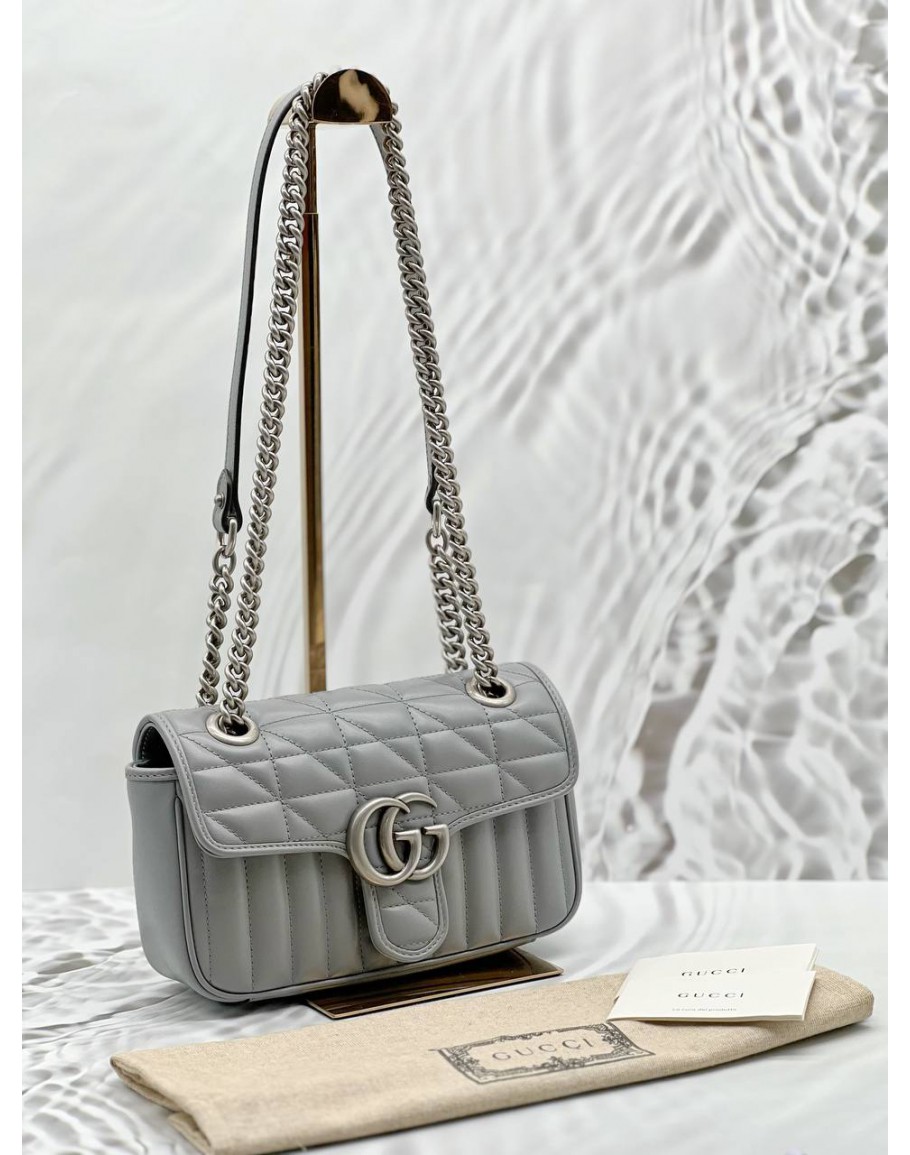 Tags:  (LIKE NEW) GUCCI GG MARMONT MINI SHOULDER BAG IN GREY MATELASSE LEATHER