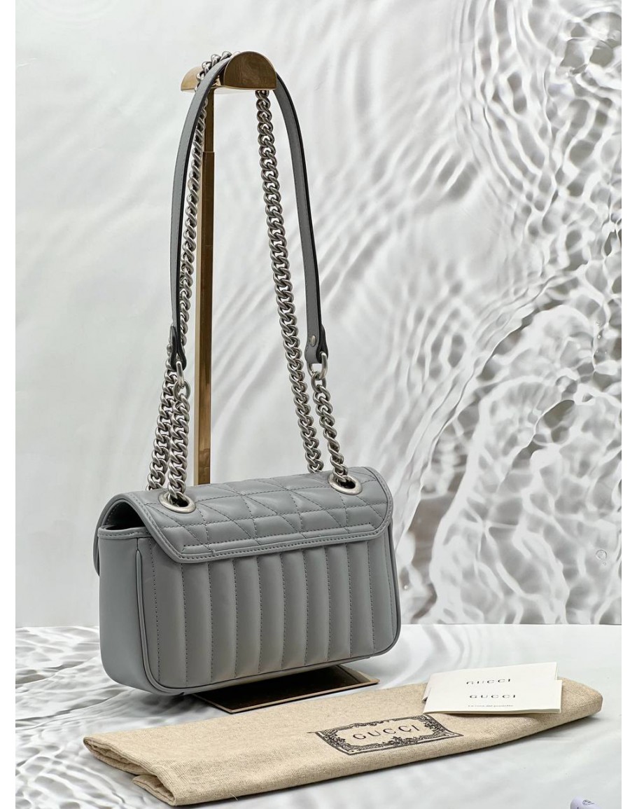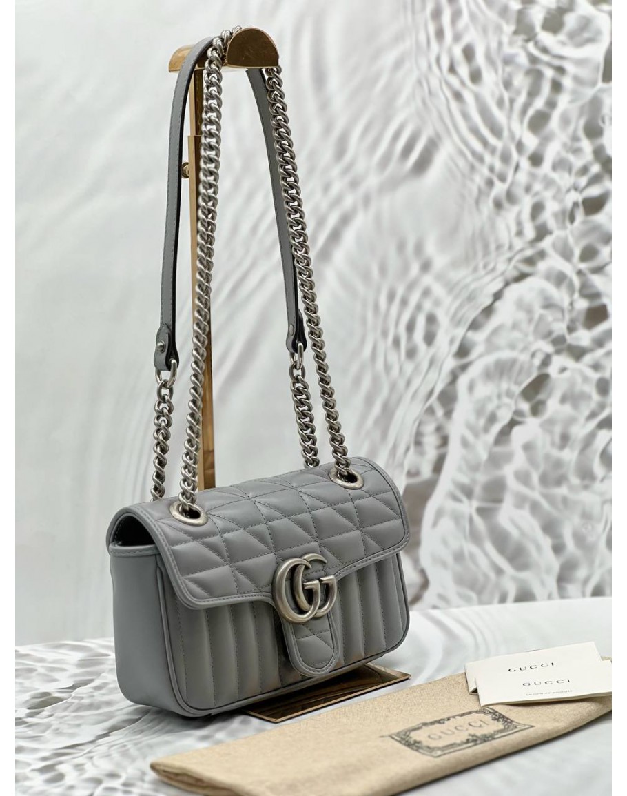(LIKE NEW) GUCCI GG MARMONT MINI SHOULDER BAG IN GREY MATELASSE LEATHER