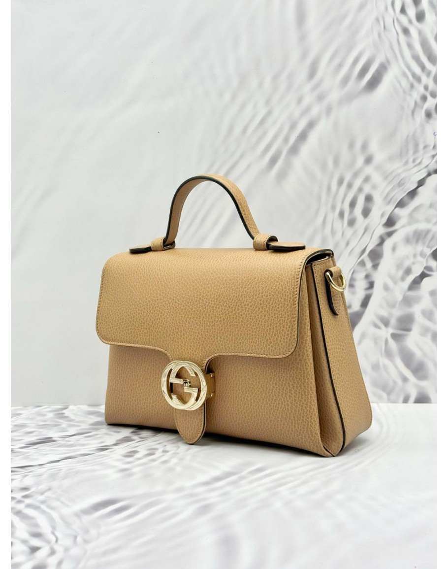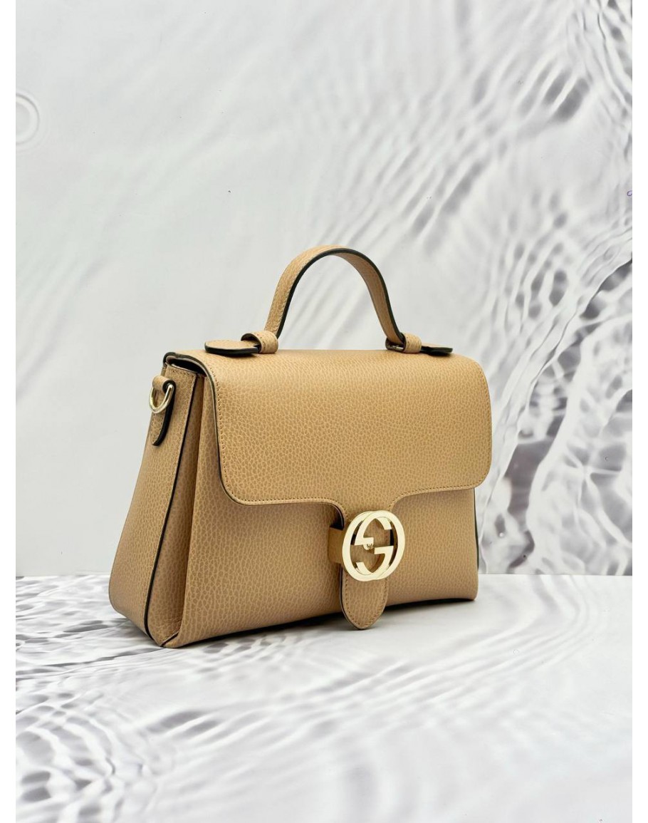 (LIKE NEW) GUCCI INTERLOCKING G TOP HANDLE AND SHOULDER BAG IN BEIGE CALFSKIN LEATHER