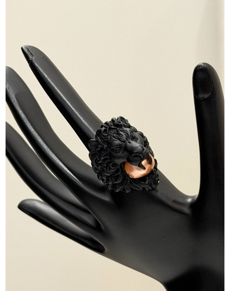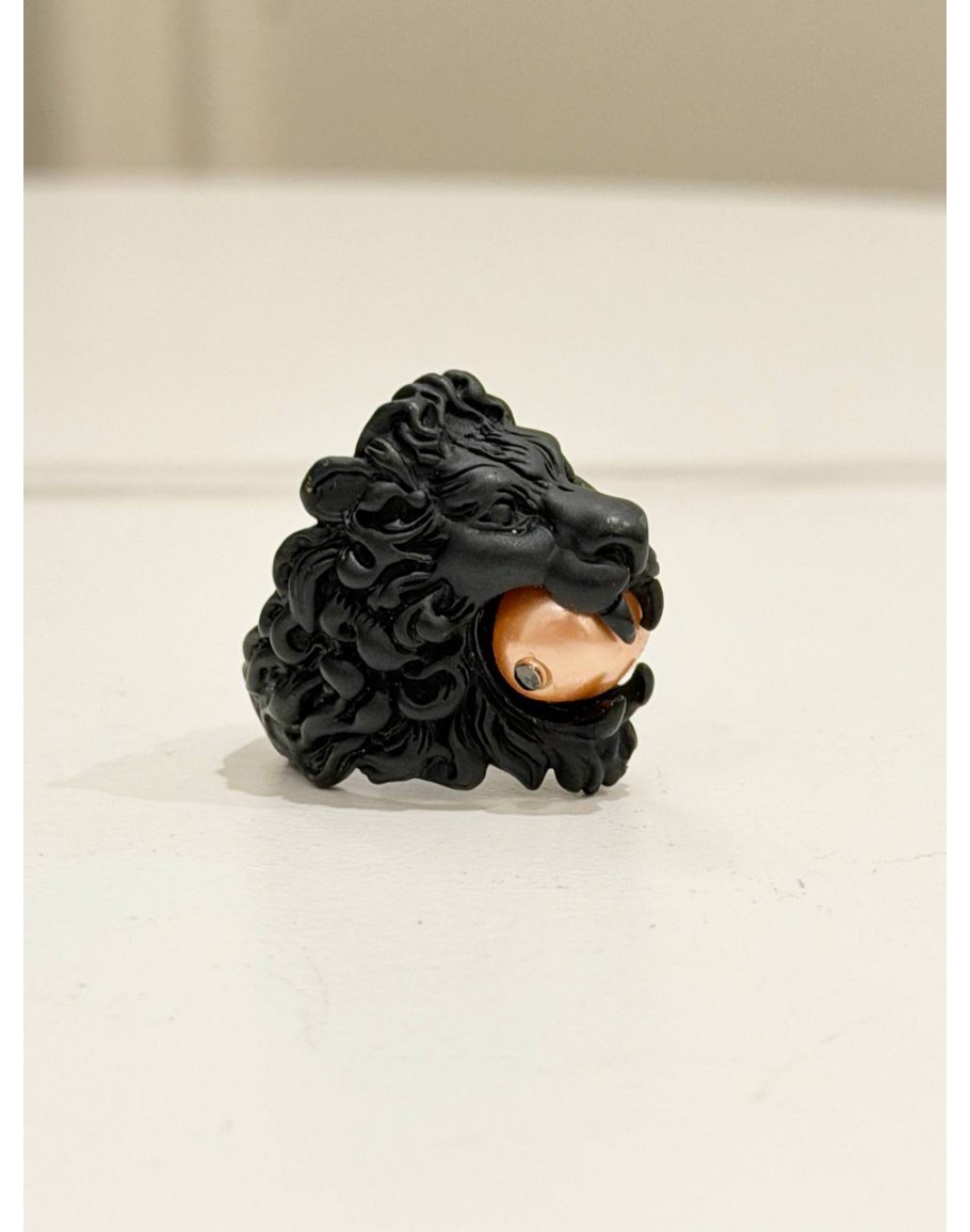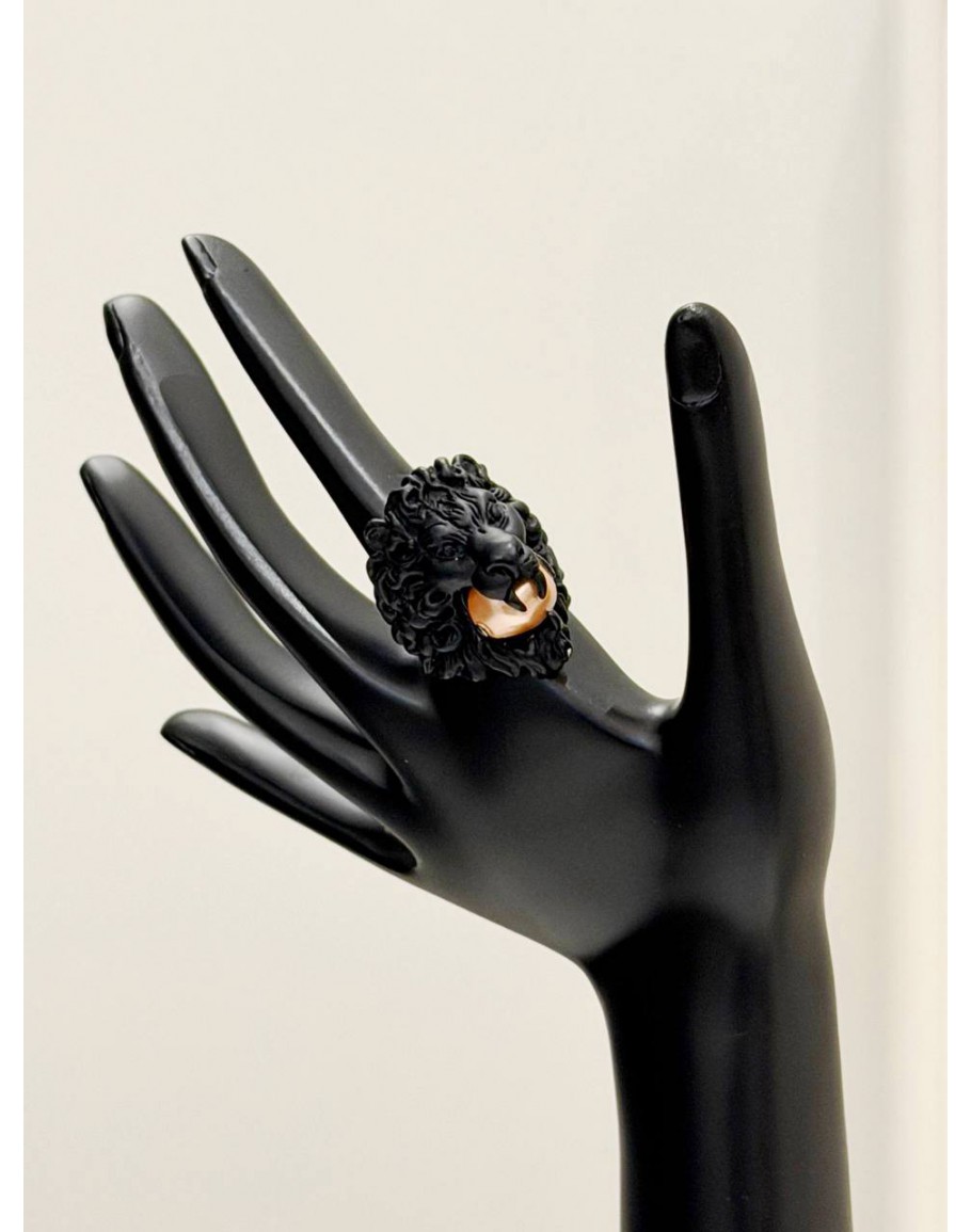 (LIKE NEW) GUCCI LION HEAD RING SIZE 16 IN BLACKENED METAL WITH PINK PEARL