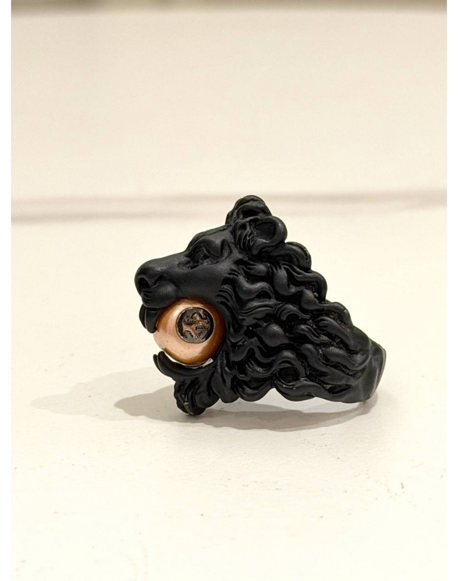 Tags: (LIKE NEW) GUCCI LION HEAD RING SIZE 16 IN BLACKENED METAL WITH PINK PEARL