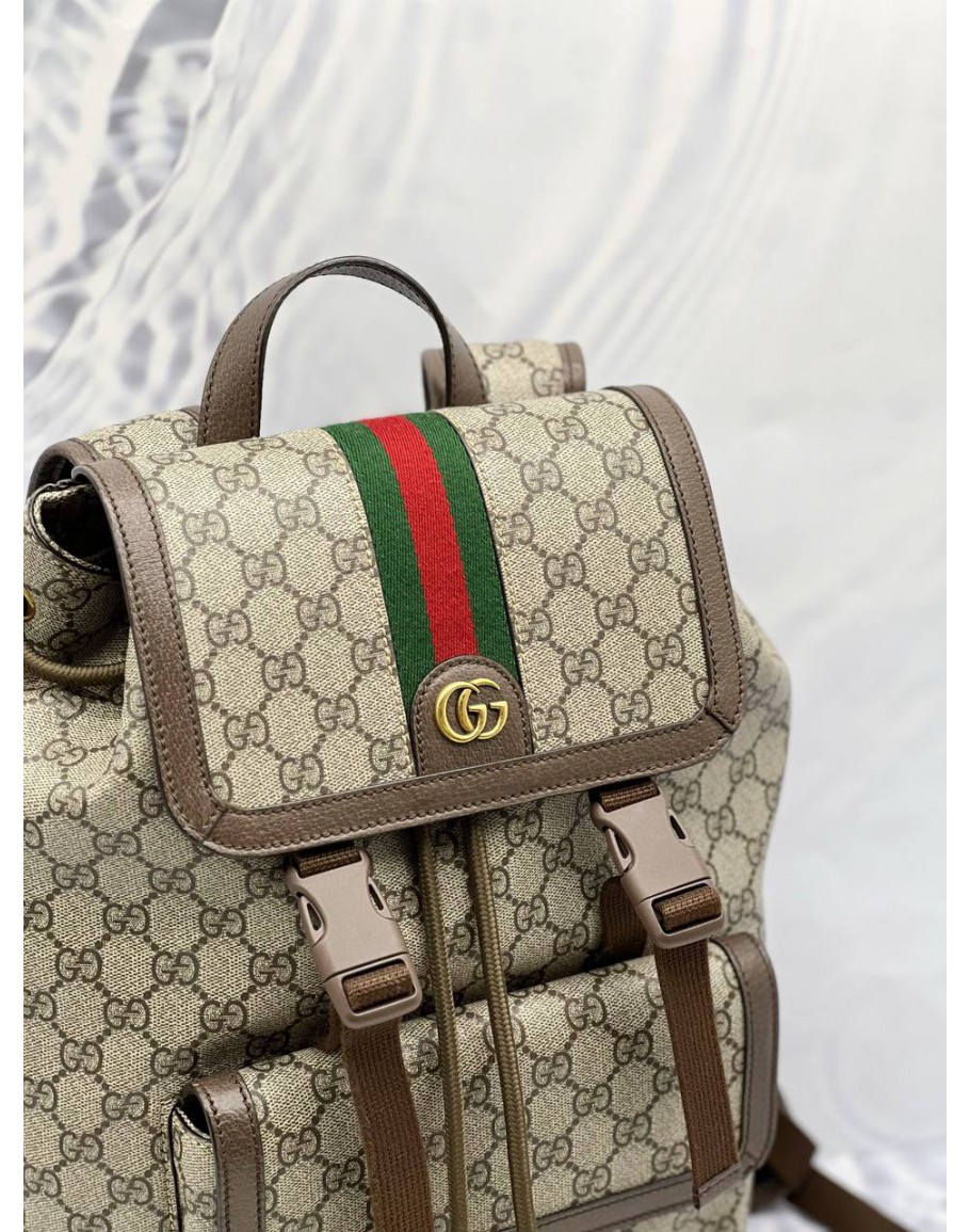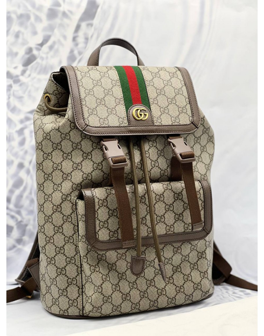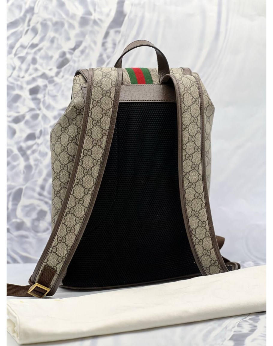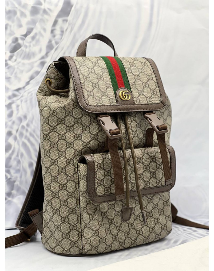 Tags: (LIKE NEW) GUCCI OPHIDIA GG BACKPACK IN BEIGE GG SUPREME CANVAS WITH DARK BROWN LEATHER