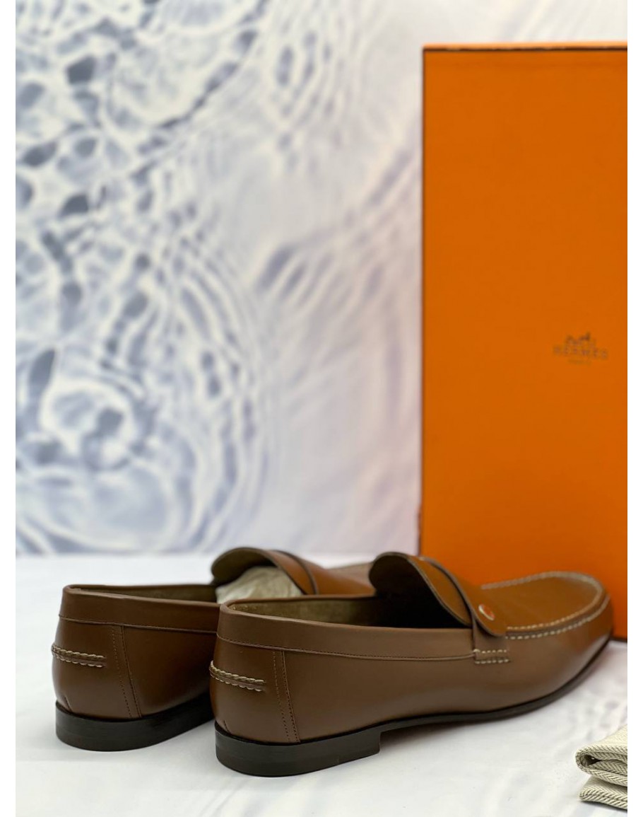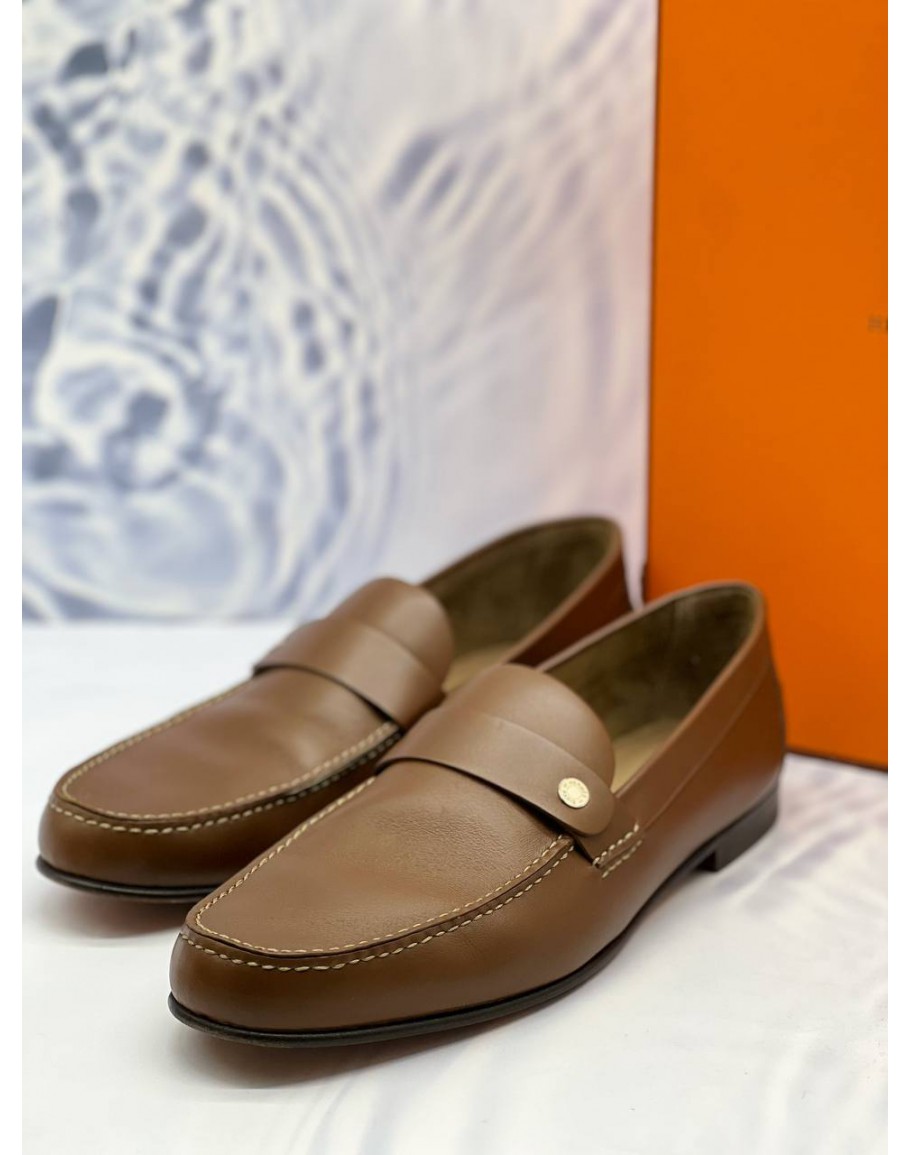 (LIKE NEW) HERMES ODEON LOAFERS SIZE 43 IN BROWN CALFSKIN LEATHER -FULL SET-
