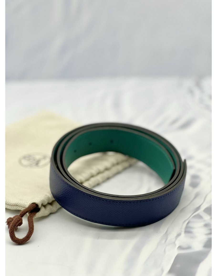 (LIKE NEW) HERMES REVERSIBLE BELT SIZE 100CM IN BLUE EPSOM LEATHER WITH GREEN ODYSSEE LEATHER