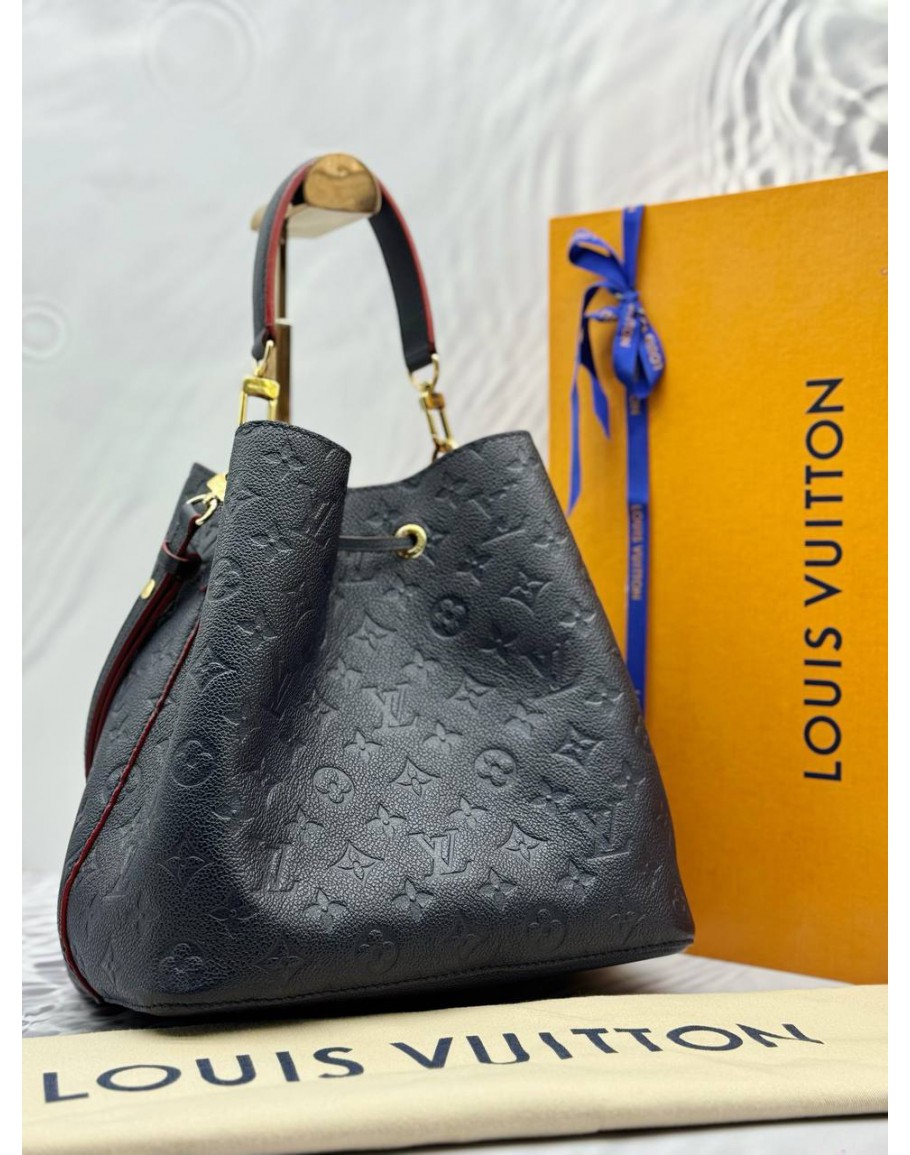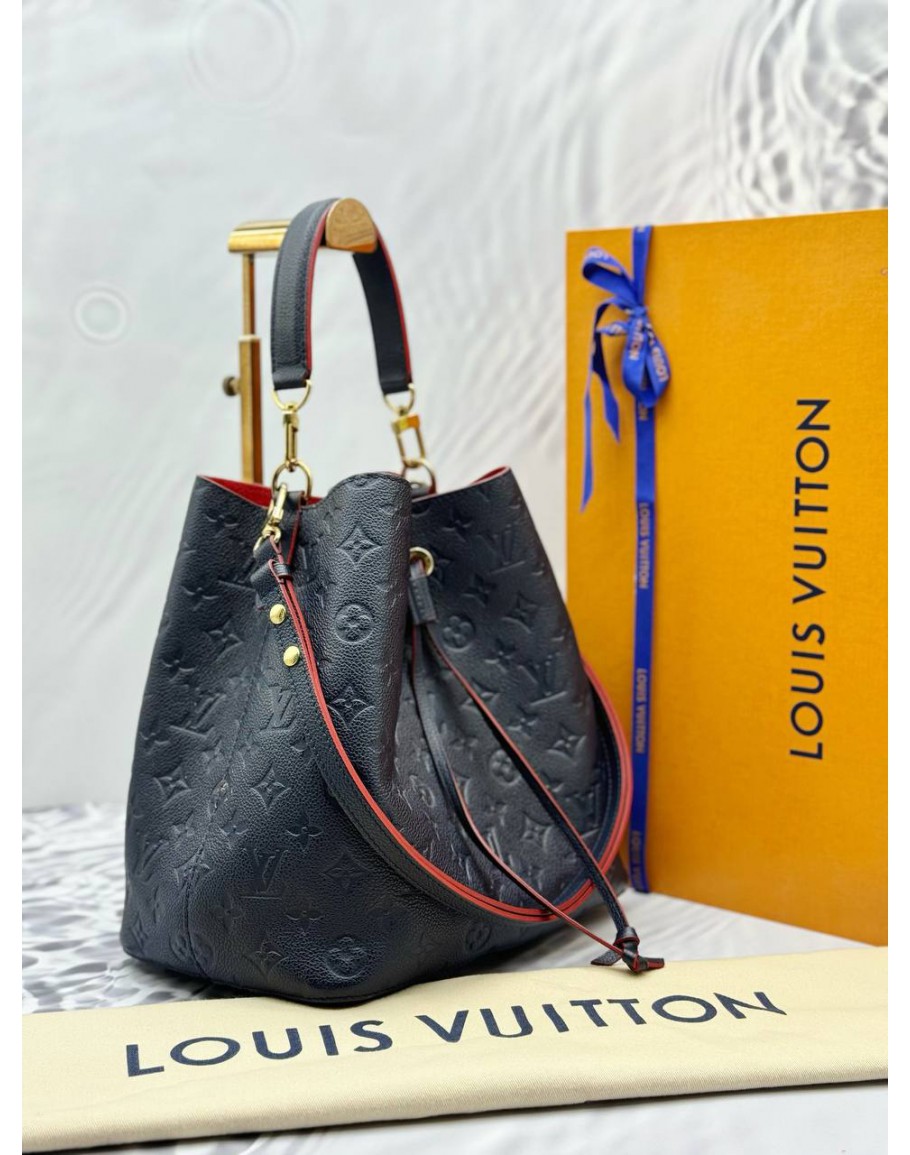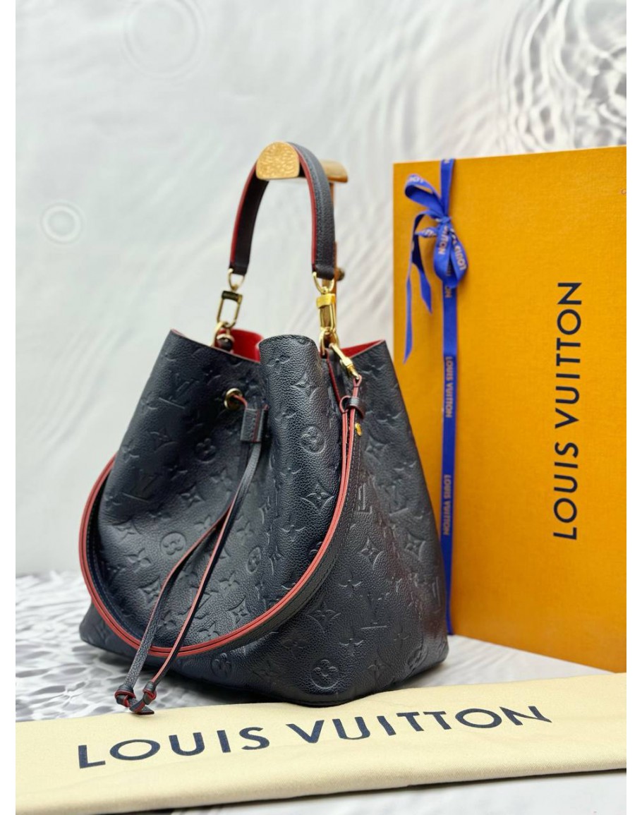 (LIKE NEW) LOUIS VUITTON NEONOE MM IN DARK BLUE MONOGRAM EMPREINTE LEATHER WITH RED EDGE DETAILING -FULL SET-