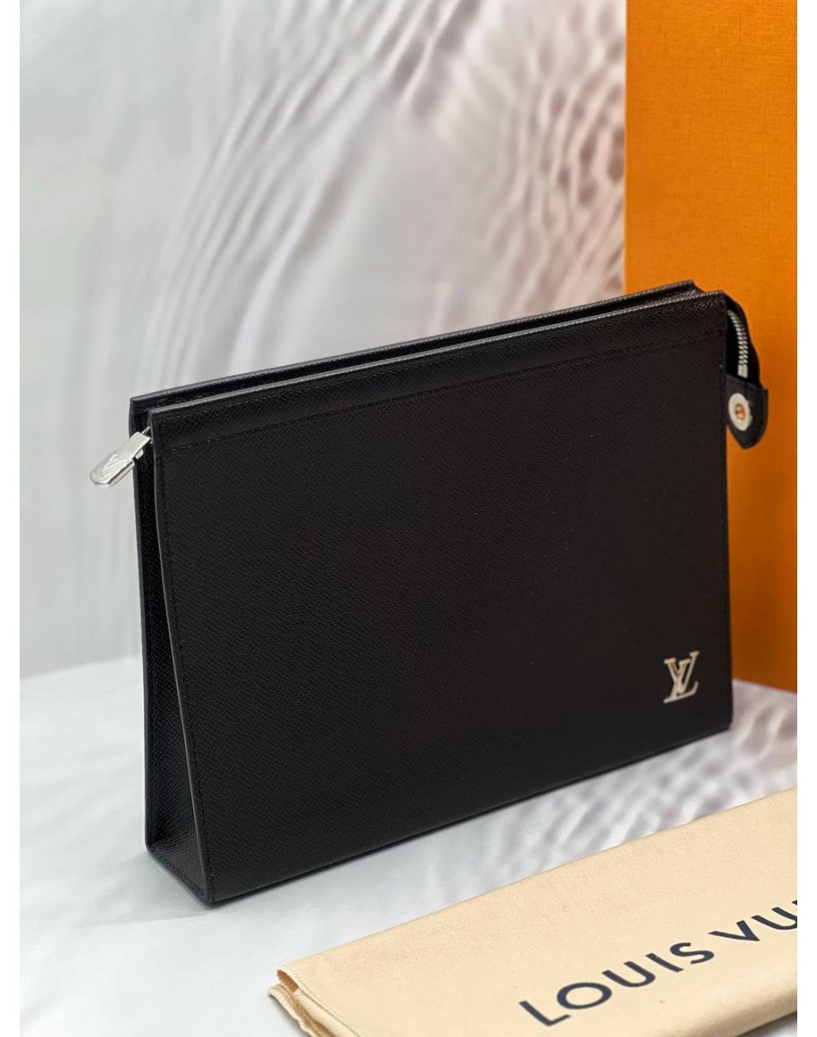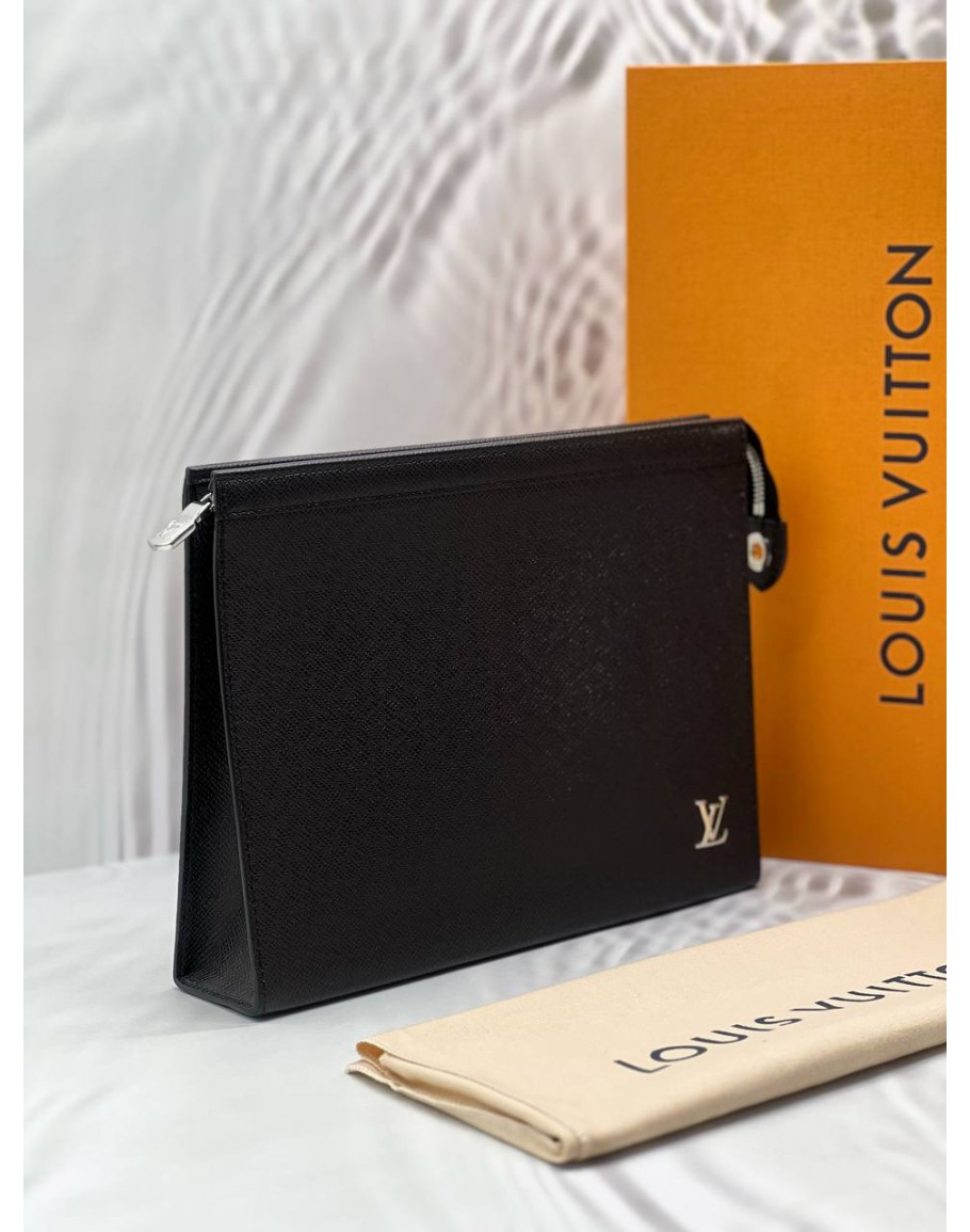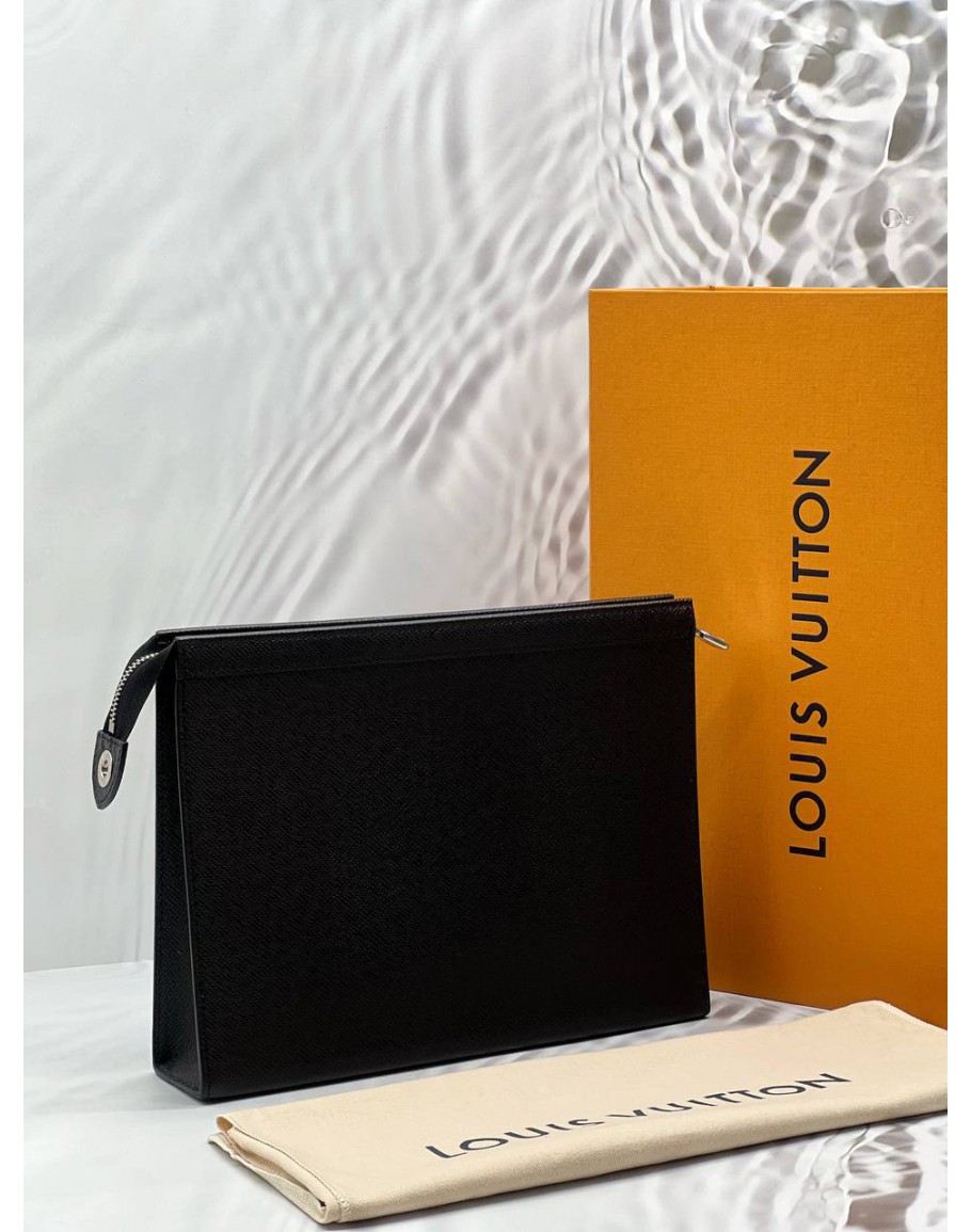 Tags: (LIKE NEW) LOUIS VUITTON POCHETTE VOYAGE MM IN BLACK TAIGA LEATHER -FULL SET-