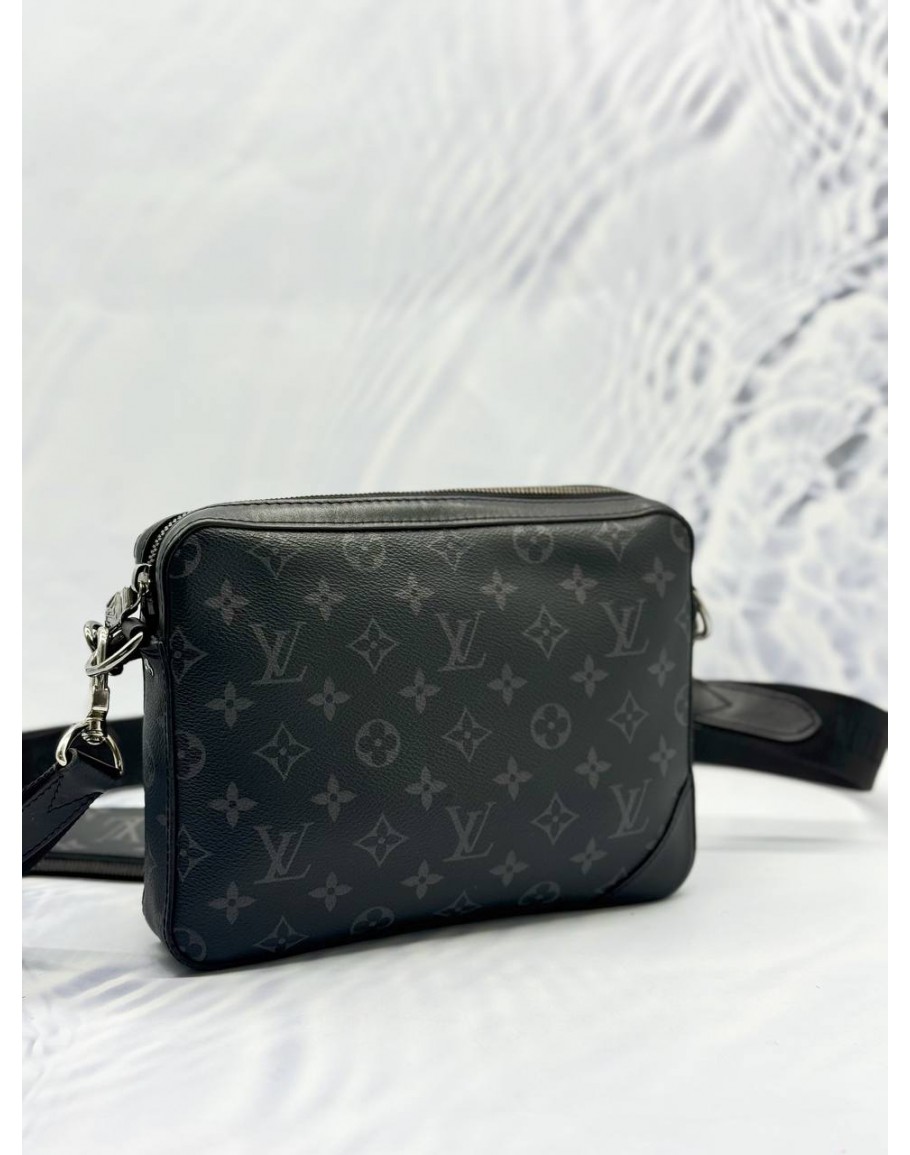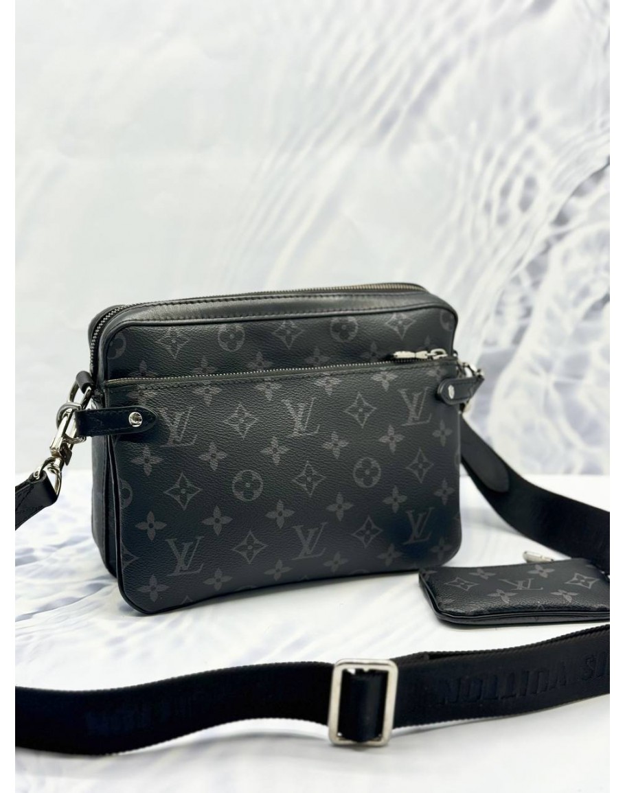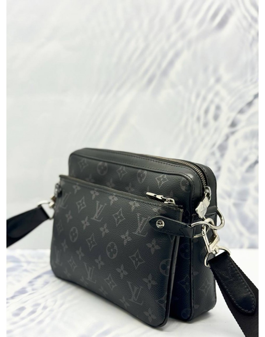 (LIKE NEW) LOUIS VUITTON TRIO MESSENGER BAG IN BLACK MONOGRAM ECLIPSE CANVAS WITH CALFSKIN LEATHER