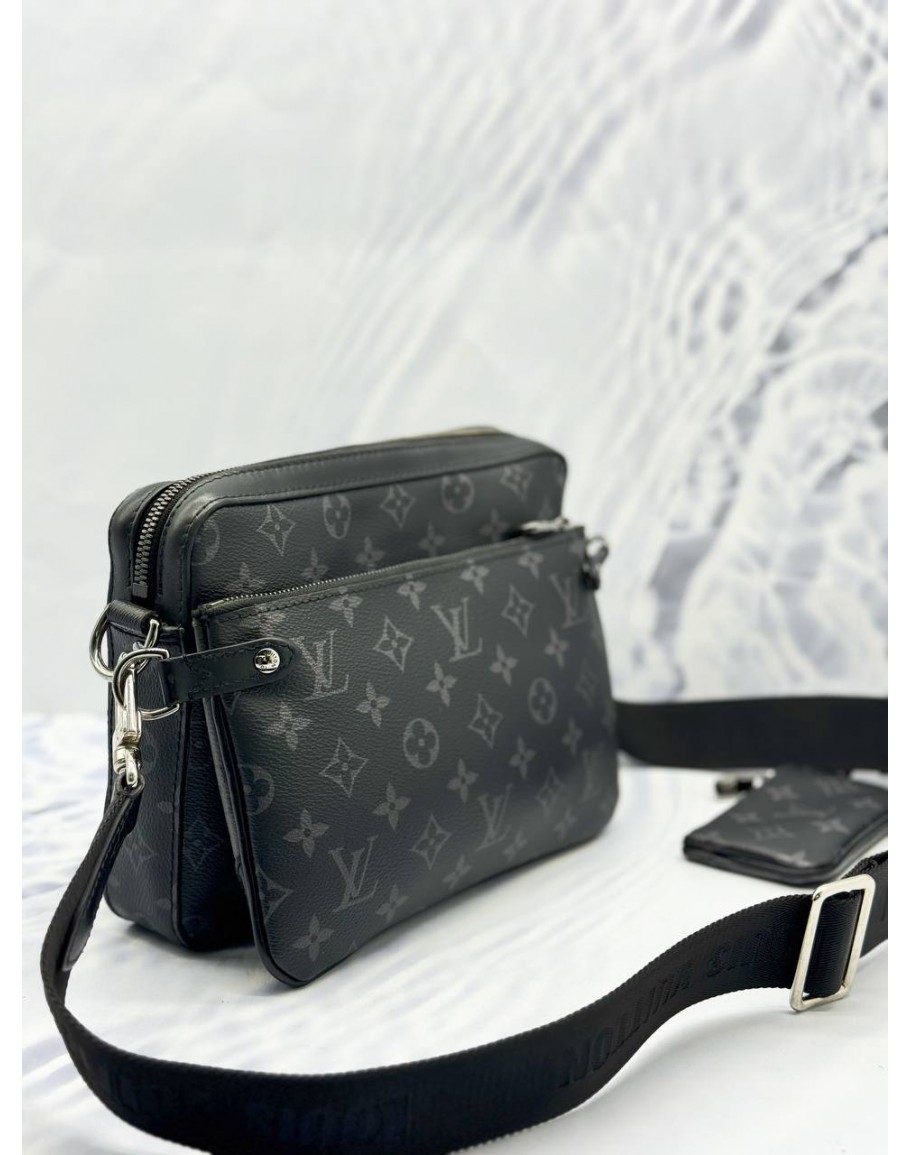 Tags: (LIKE NEW) LOUIS VUITTON TRIO MESSENGER BAG IN BLACK MONOGRAM ECLIPSE CANVAS WITH CALFSKIN LEATHER