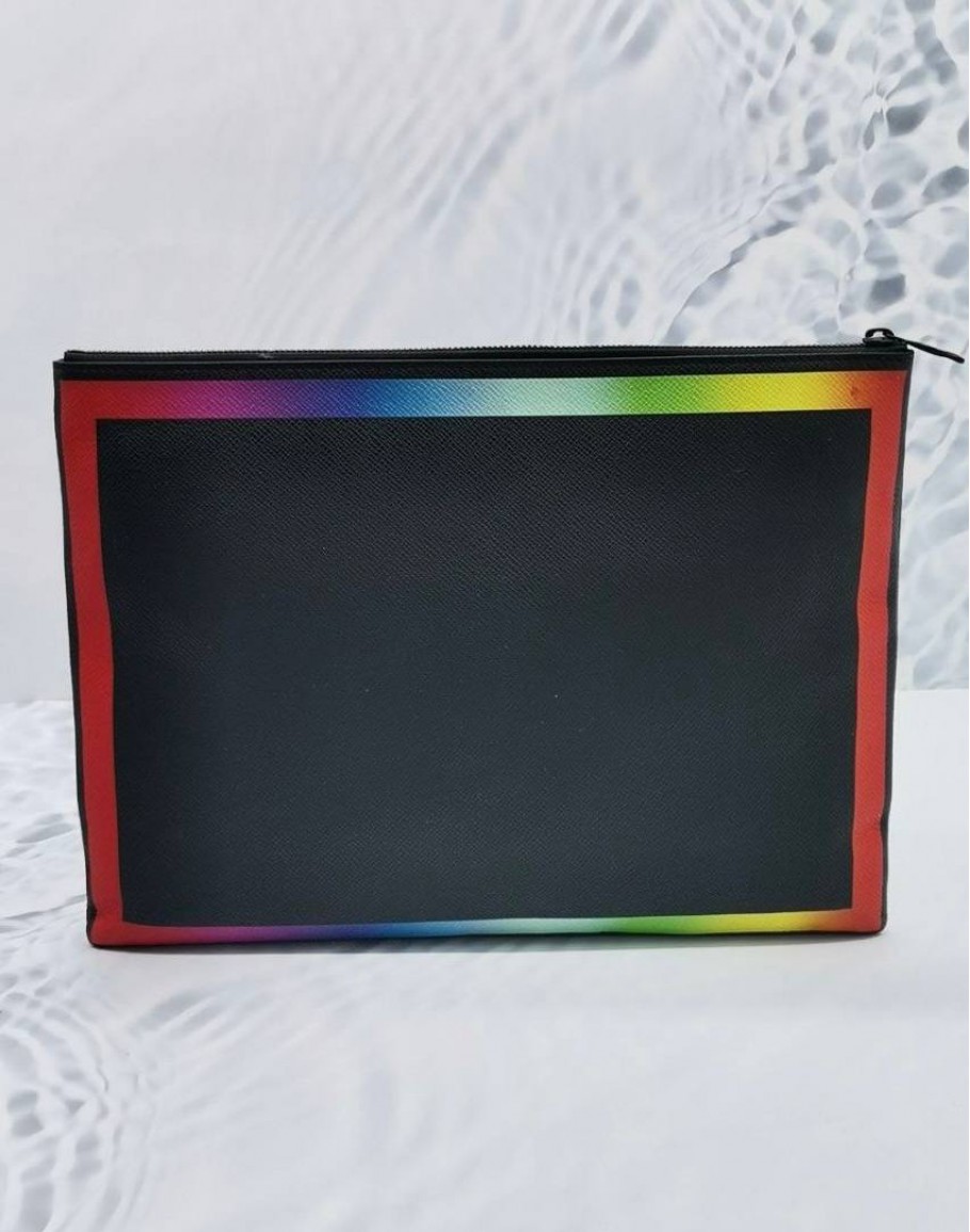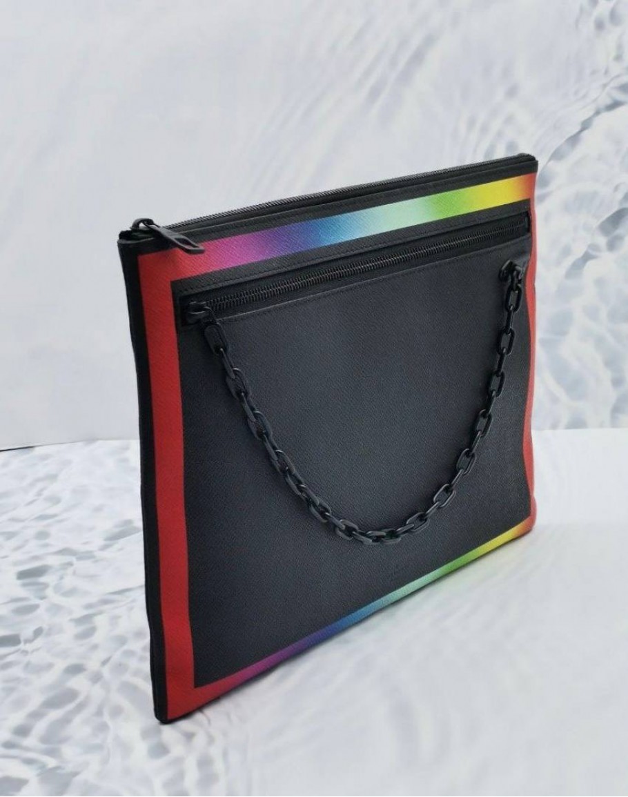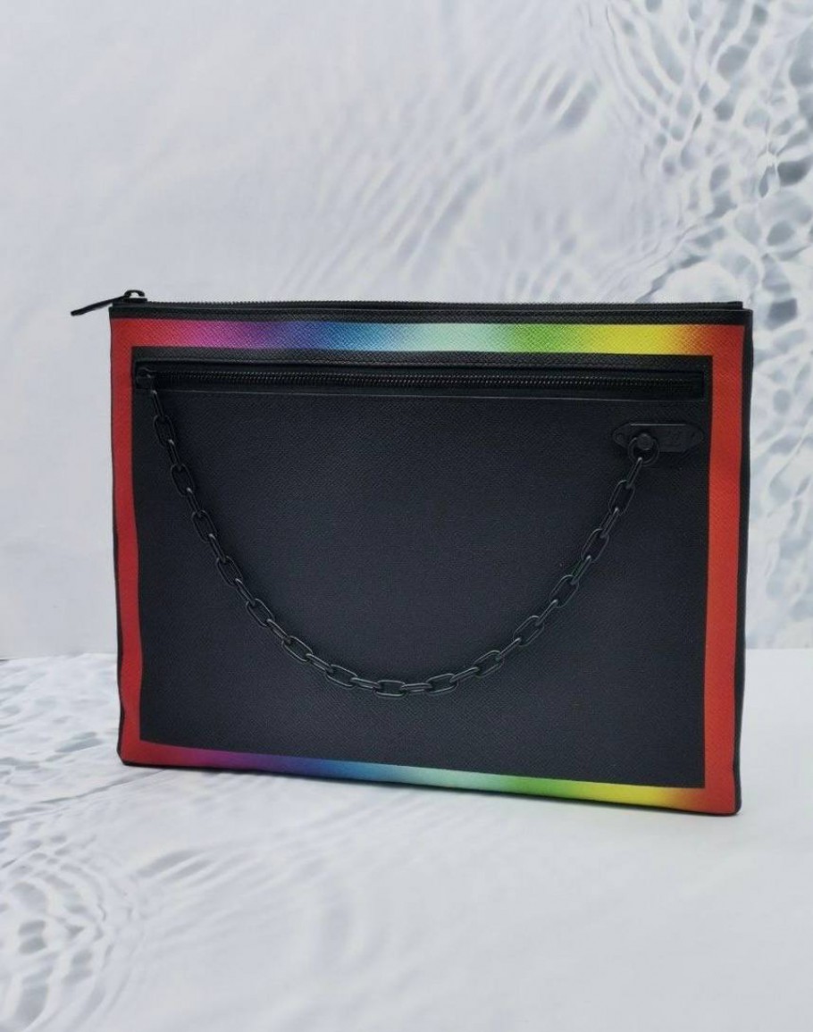Tags: (LIKE NEW) LOUIS VUITTON X VIRGIL ABLOH POCHETTE A4 IN BLACK TAIGA LEATHER WITH VIBRANT RAINBOW