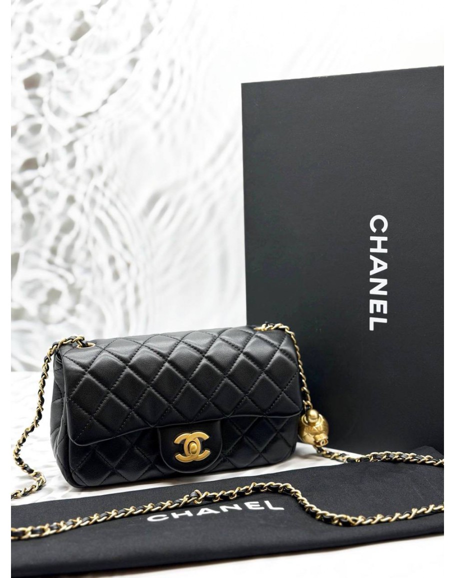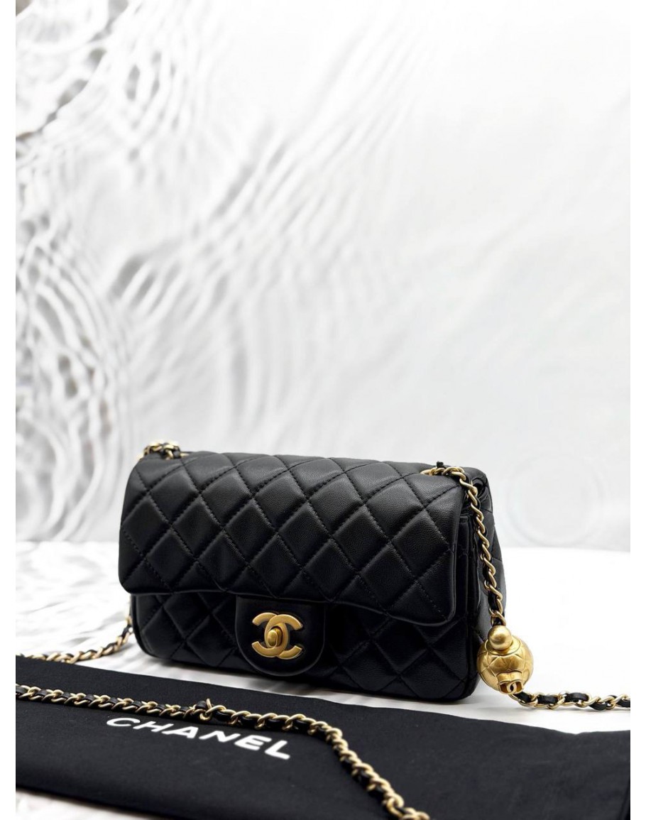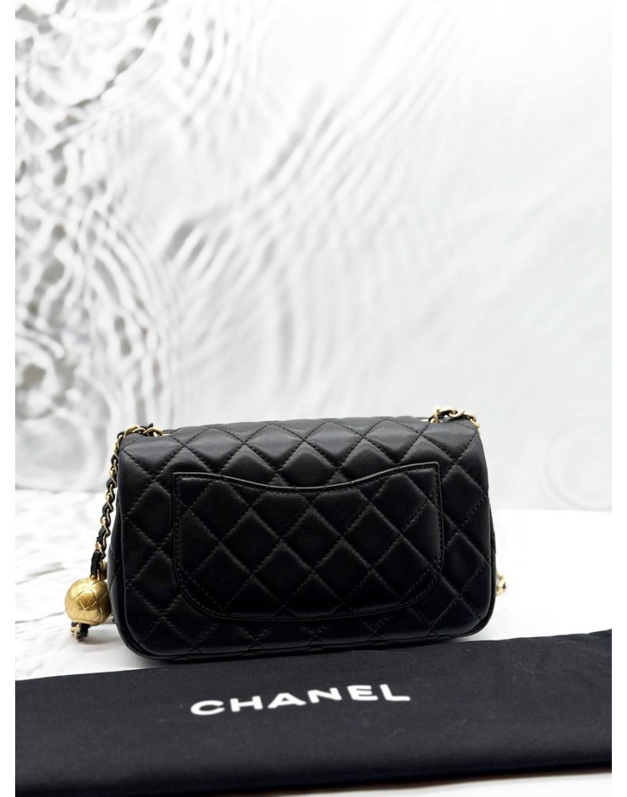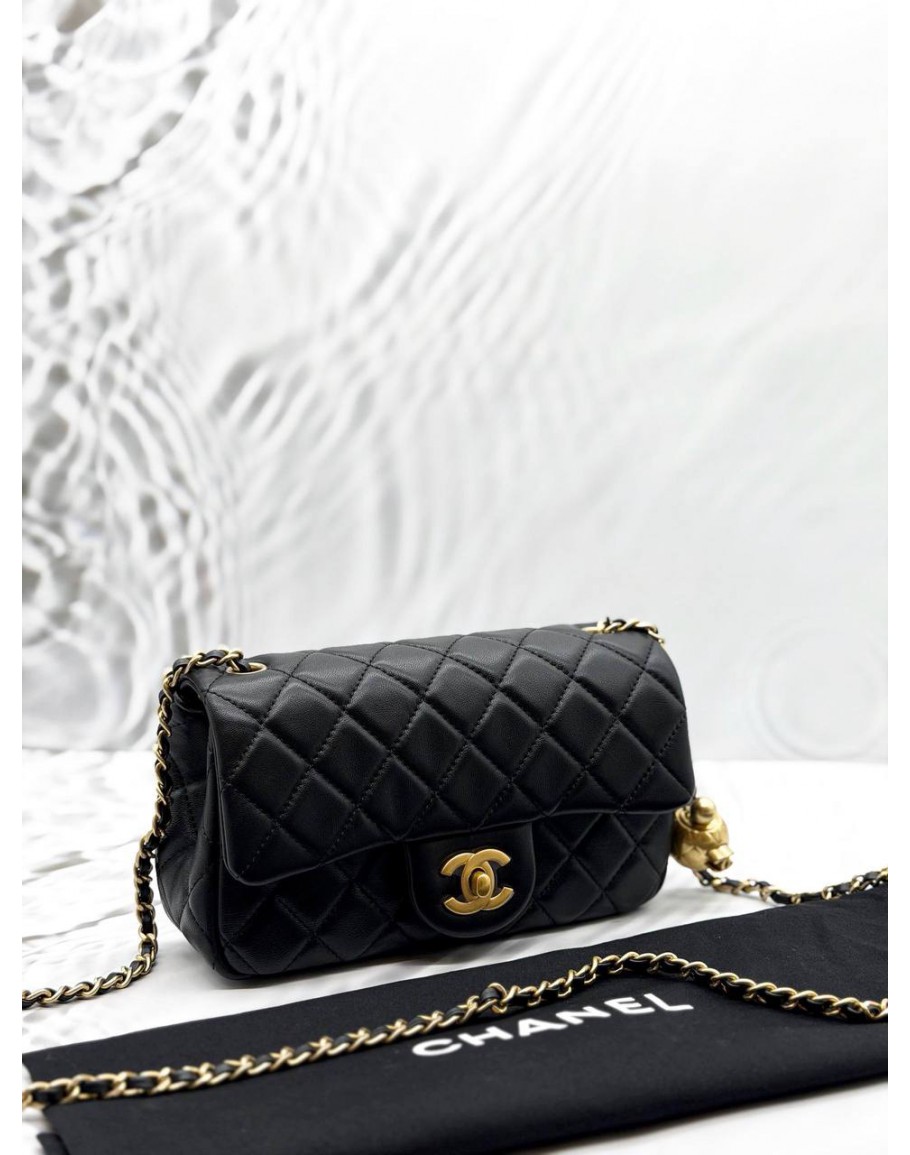Tags: (LIKE NEW) MICROCHIP CHANEL PEARL CRUSH MINI FLAP BAG IN BLACK LAMBSKIN LEATHER -FULL SET-
