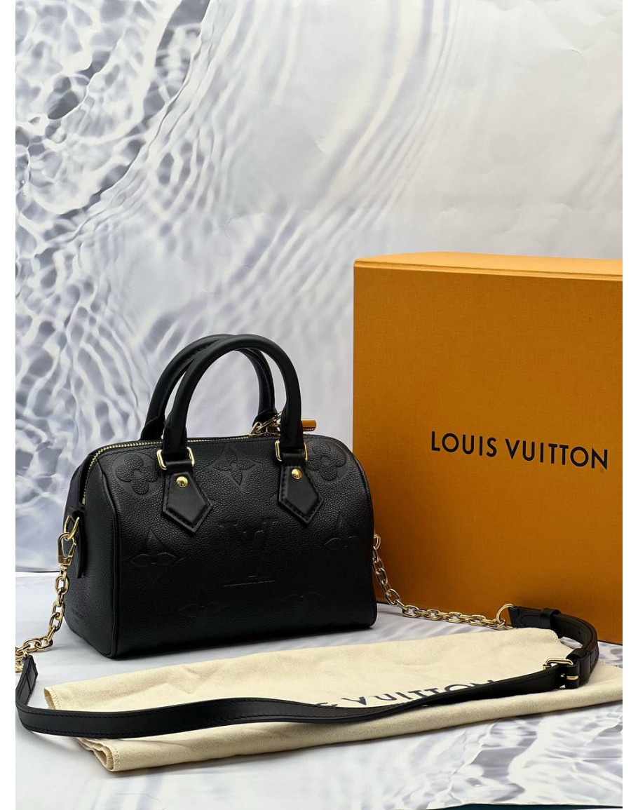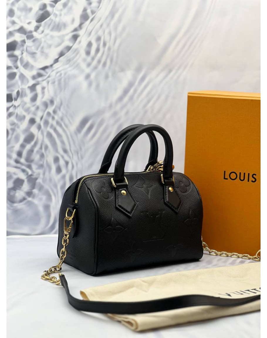 (LIKE NEW) MICROCHIP LOUIS VUITTON SPEEDY BANDOULIERE 20 IN BLACK MONOGRAM EMPREINTE LEATHER -FULL SET-