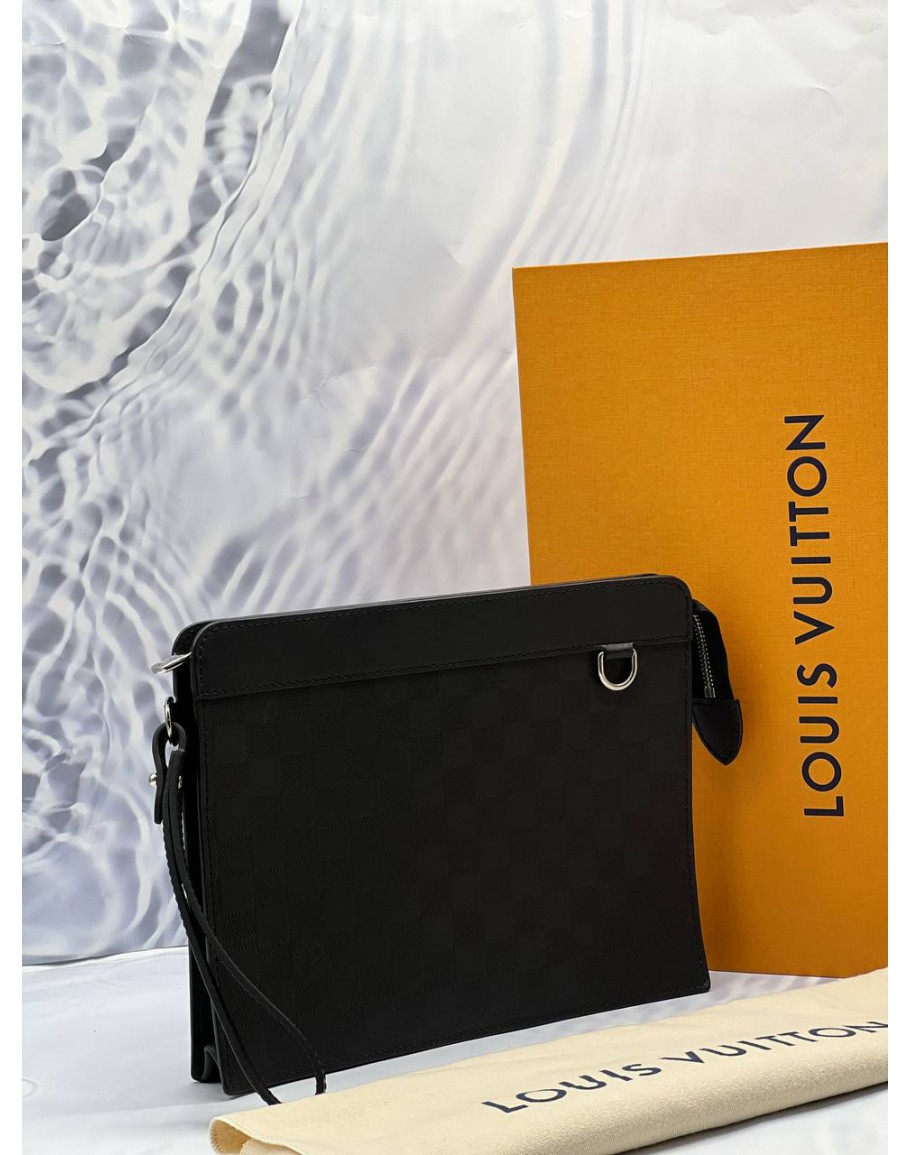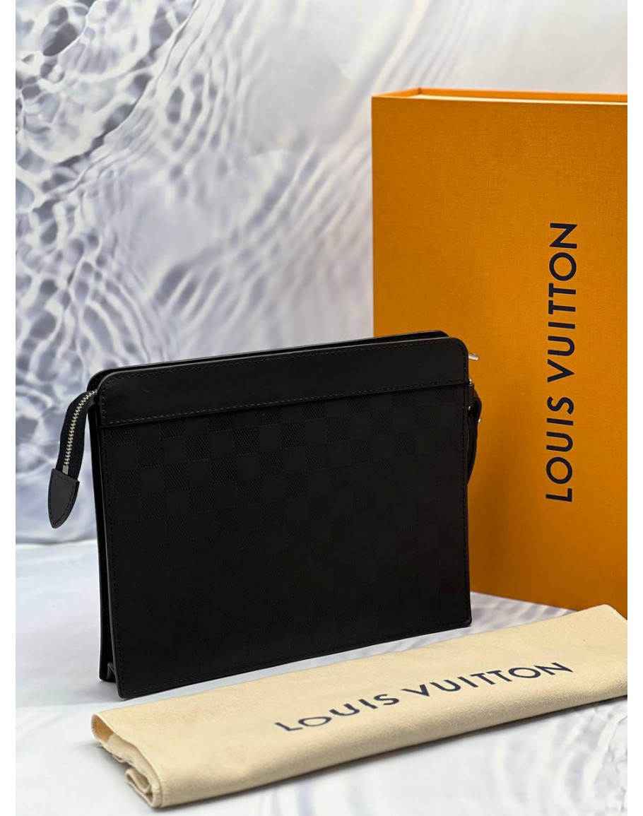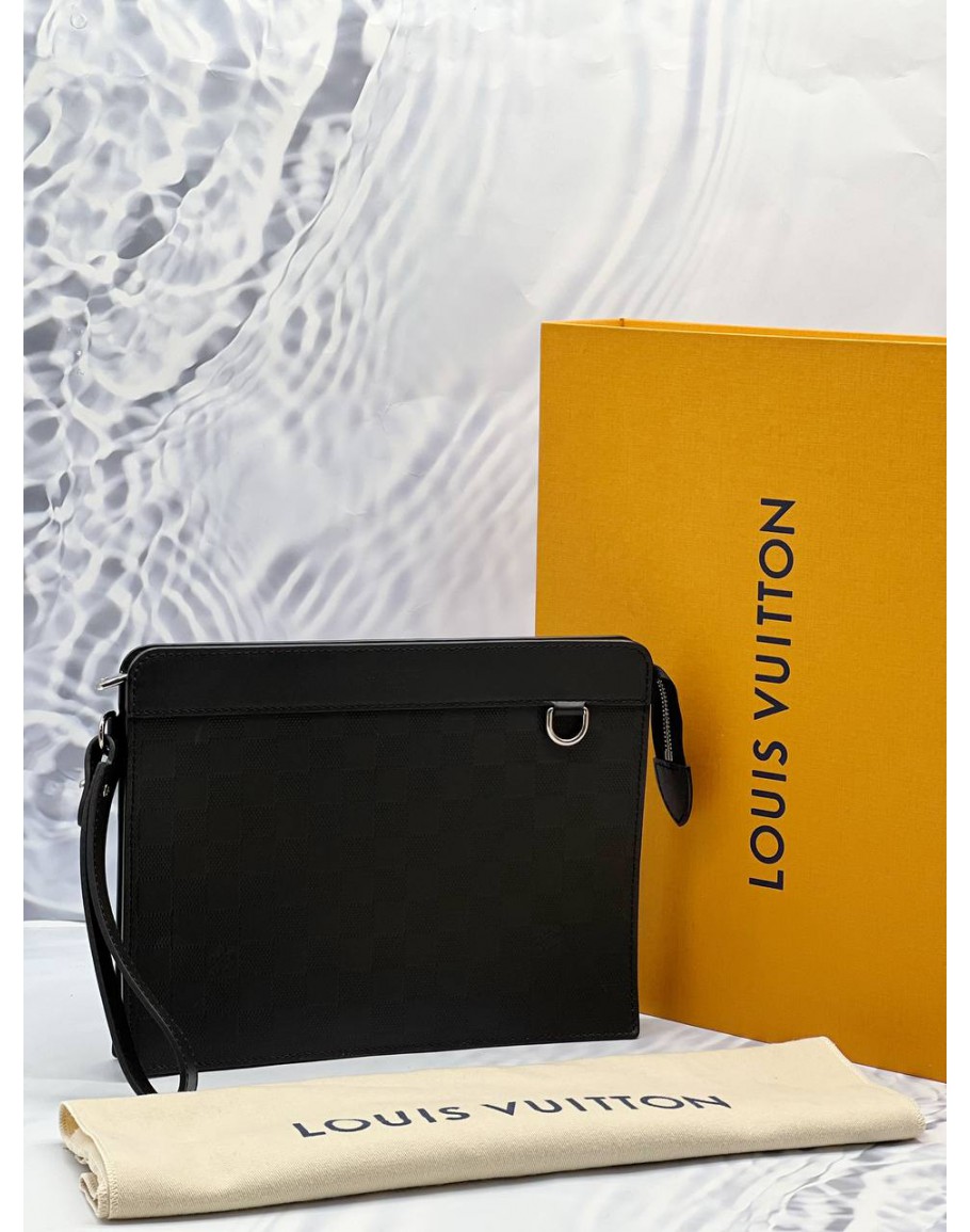 Tags: (LIKE NEW) MICROCHIP LOUIS VUITTON STAND POUCH IN BLACK DAMIER INFINI LEATHER -FULL SET-