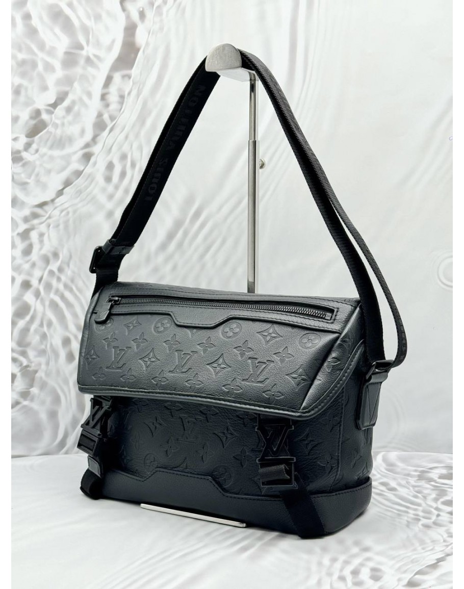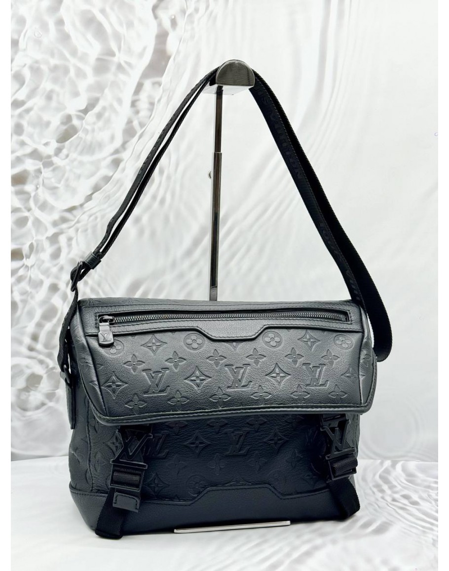Tags:  (LIKE NEW) MICROCHIP LOUIS VUITTON VOYAGER PM MESSENGER BAG IN BLACK MONOGRAM SHADOW LEATHER