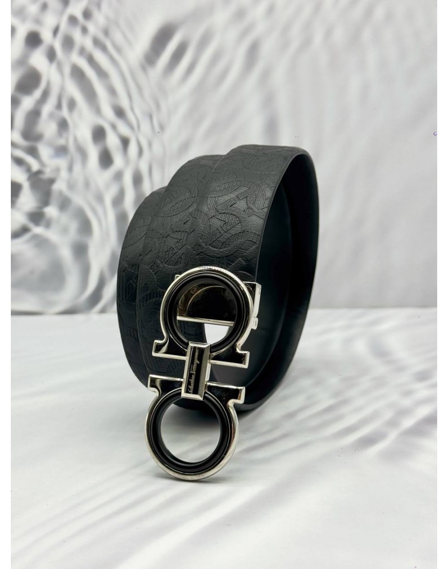 (LIKE NEW) SALVATORE FERRAGAMO GANCINI BELT SIZE 98 CM IN BLACK LEATHER