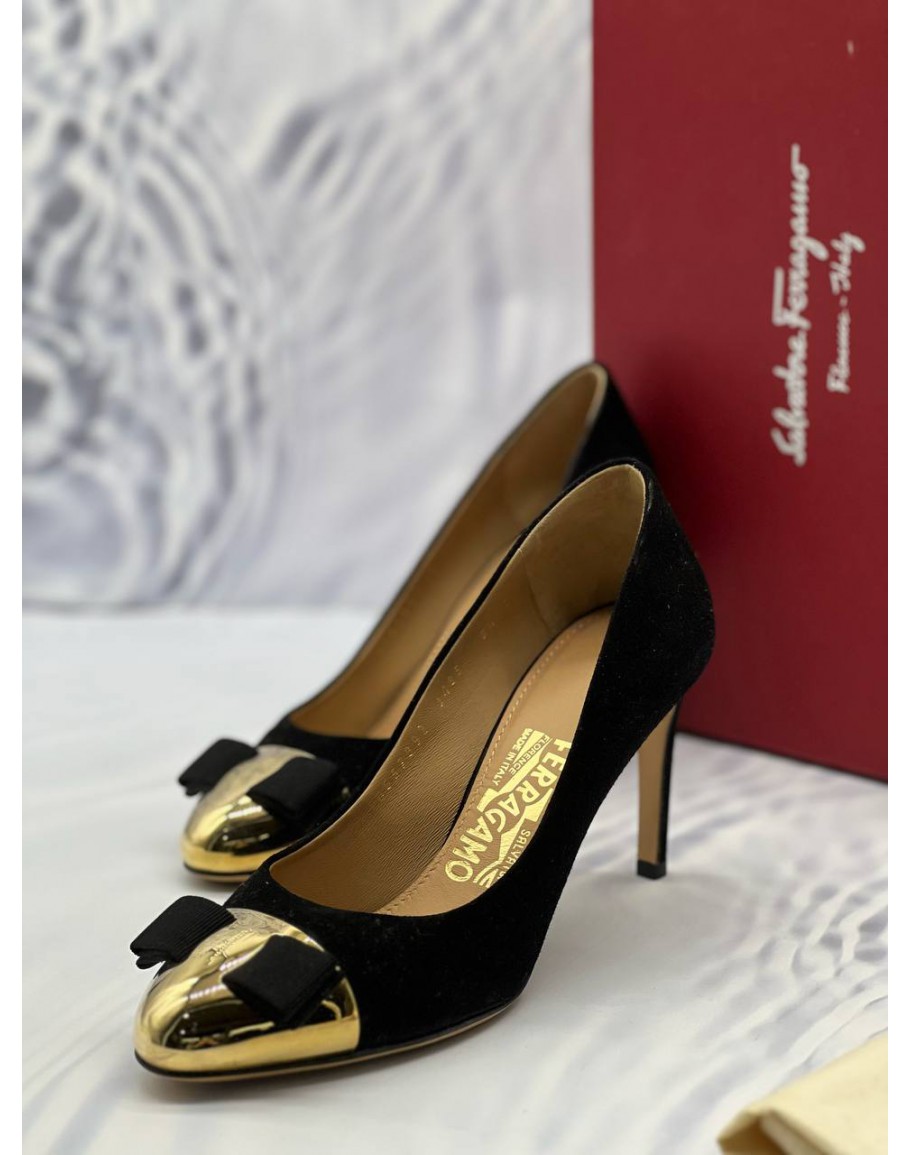 Tags: (LIKE NEW) SALVATORE FERRAGAMO VARA BOW PUMPS SIZE 5.5 IN BLACK SUEDE LEATHER -FULL SET-