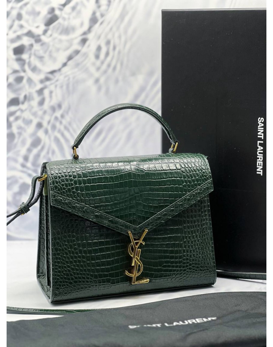 Tags:  (LIKE NEW) YSL SAINT LAURENT CASSANDRA TOP HANDLE BAG IN DARK GREEN CROCODILE EMBOSSED CALFSKIN LEATHER -FULL SET-