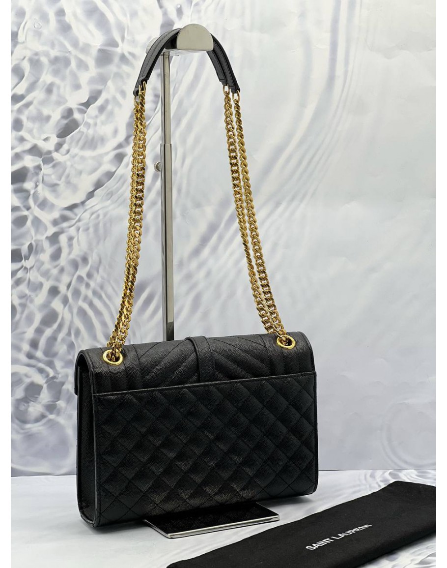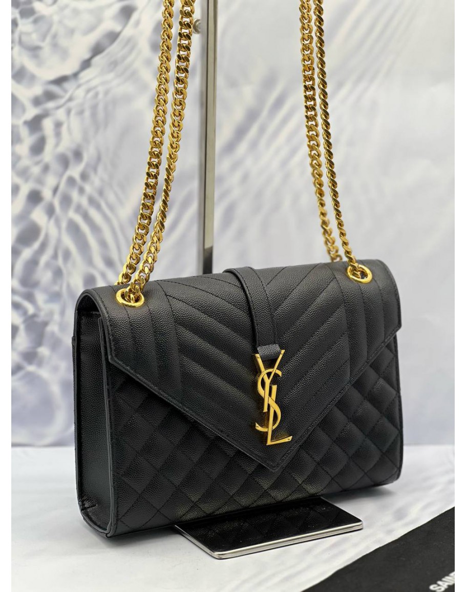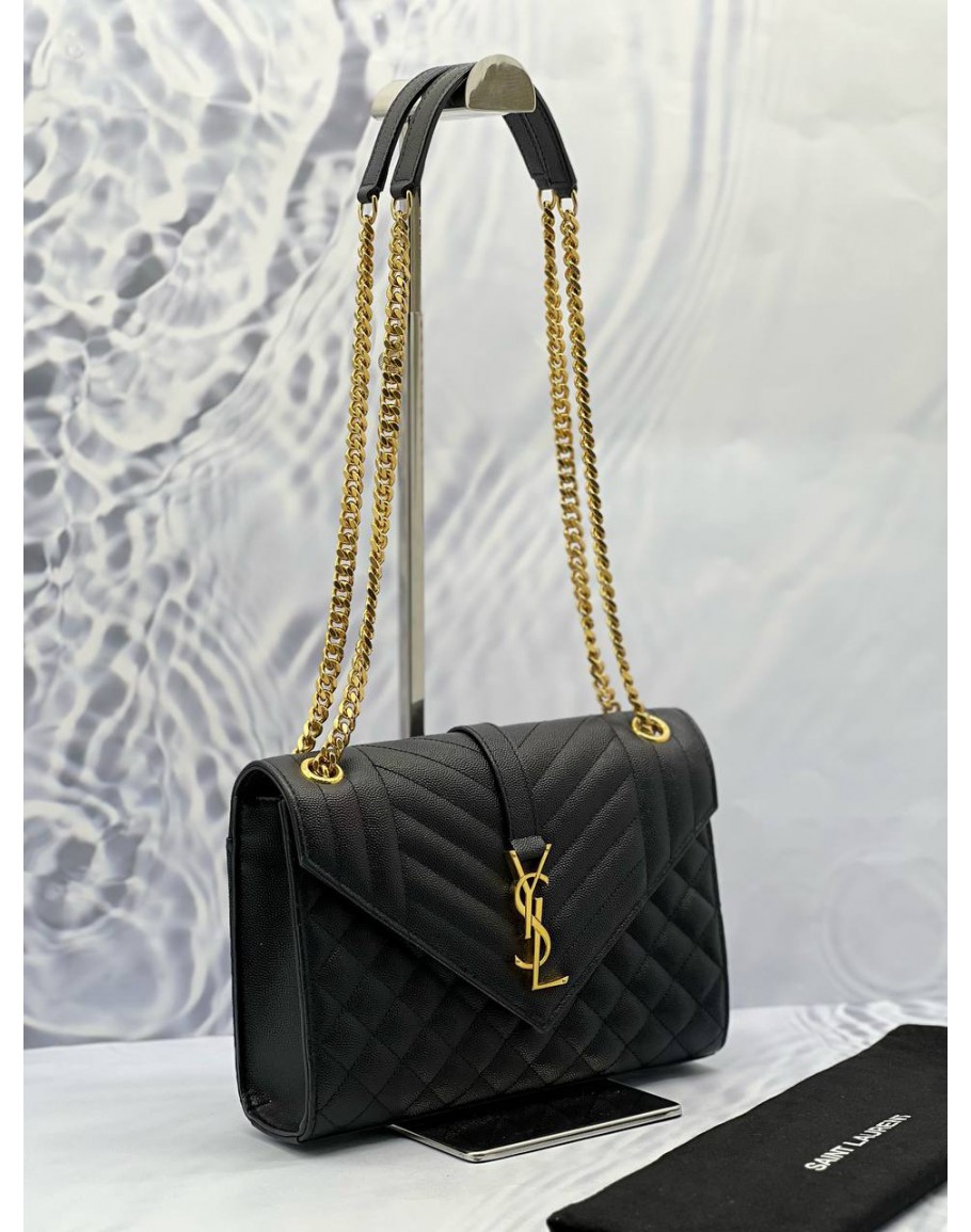 (LIKE NEW) YSL SAINT LAURENT ENVELOPE SHOULDER BAG IN BLACK GRAIN DE POUDRE EMBOSSED CALFSKIN LEATHER