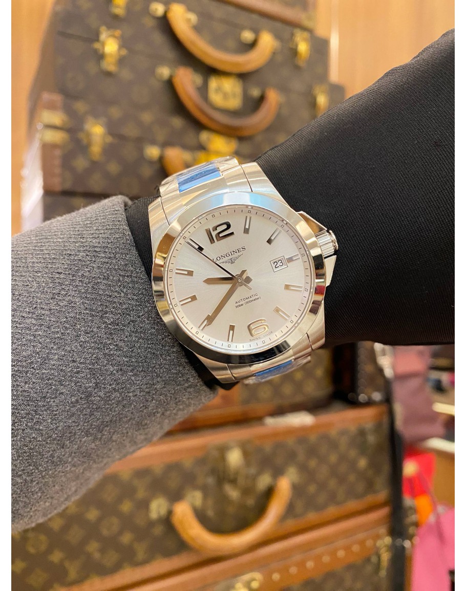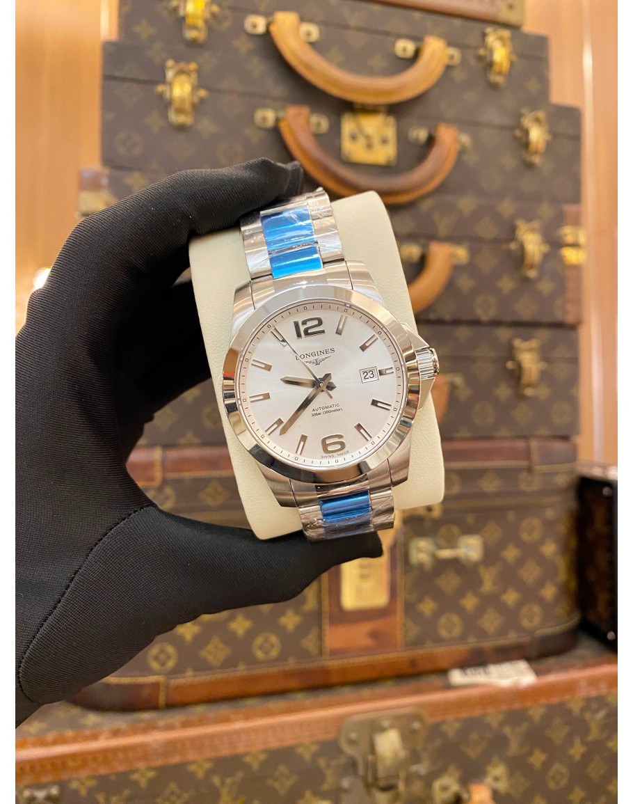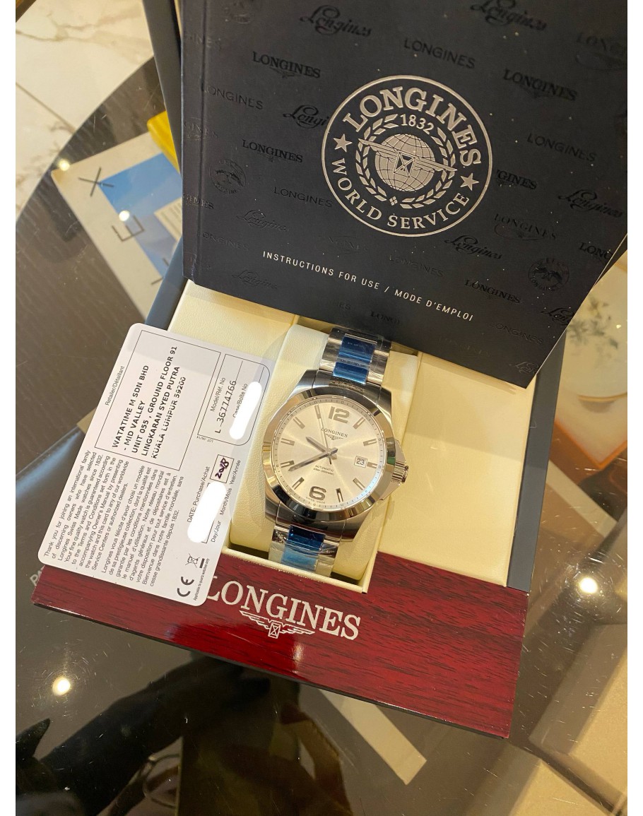 (UNUSED) (FULL STICKER) 2018 LONGINES CONQUEST REF L3.677.4.76.6 WHITE DIAL 41MM AUTOMATIC WATCH -FULL SET-