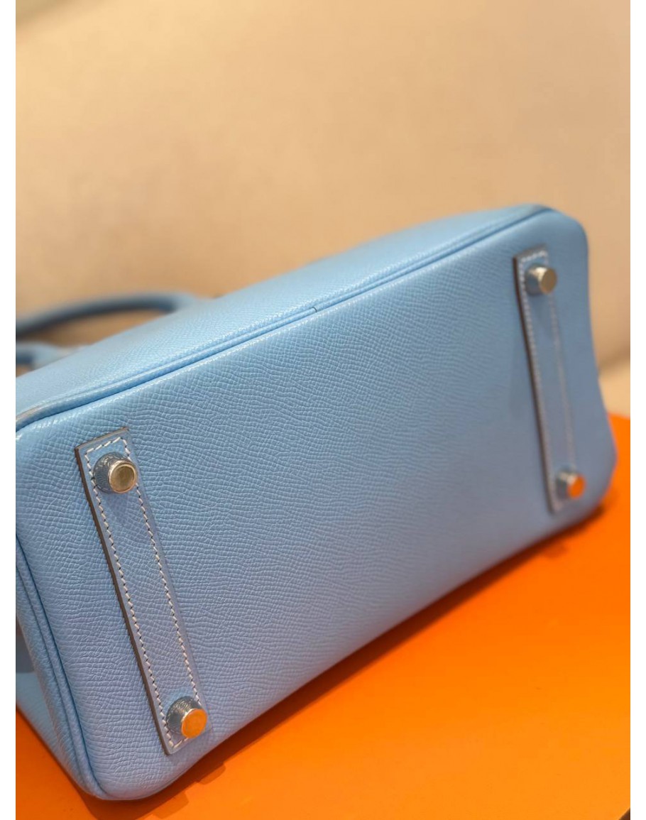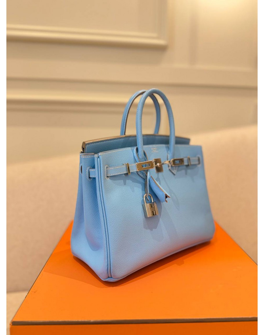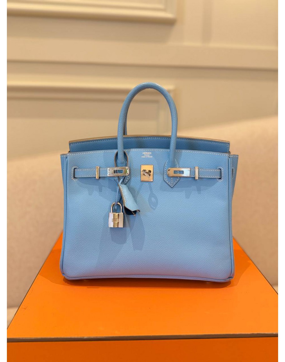 Tags: (UNUSED) 2011 HERMES BIRKIN 25 IN BLEU CELESTE EPSOM LEATHER WITH PLATINUM HARDWARE -FULL SET-