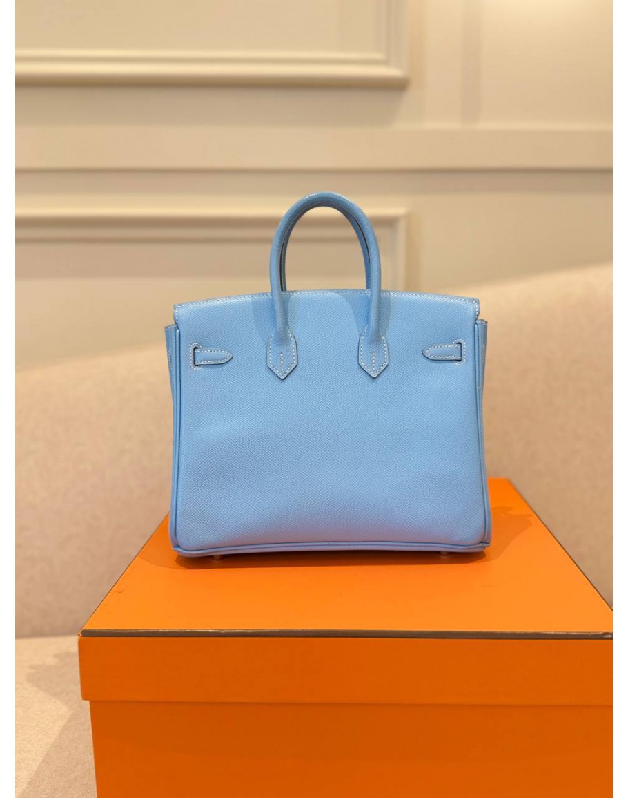 (UNUSED) 2011 HERMES BIRKIN 25 IN BLEU CELESTE EPSOM LEATHER WITH PLATINUM HARDWARE -FULL SET-