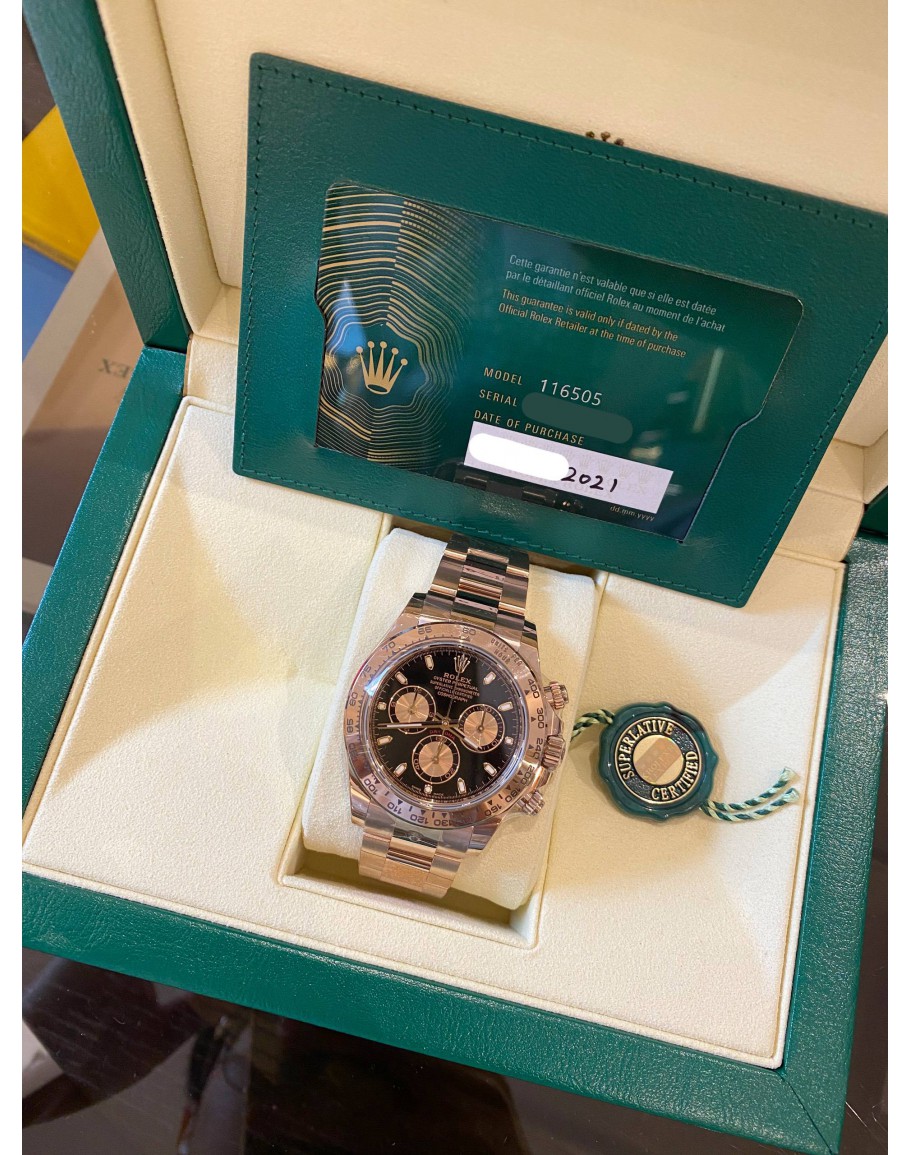 (UNUSED) 2021 ROLEX DAYTONA COSMOGRAPH 18K 750 ROSE GOLD REF 116505 BLACK DIAL 40MM AUTOMATIC WATCH -FULL SET-