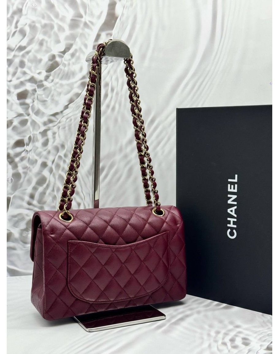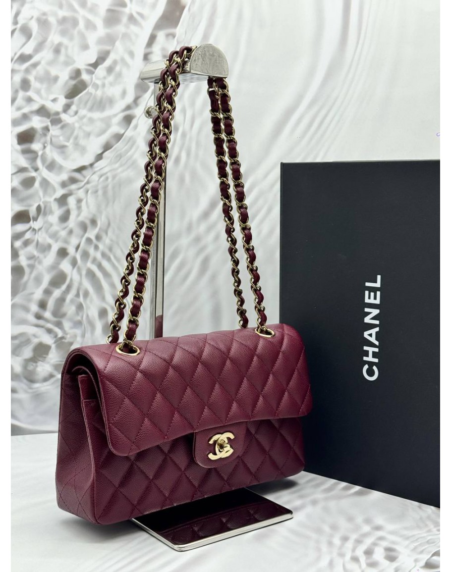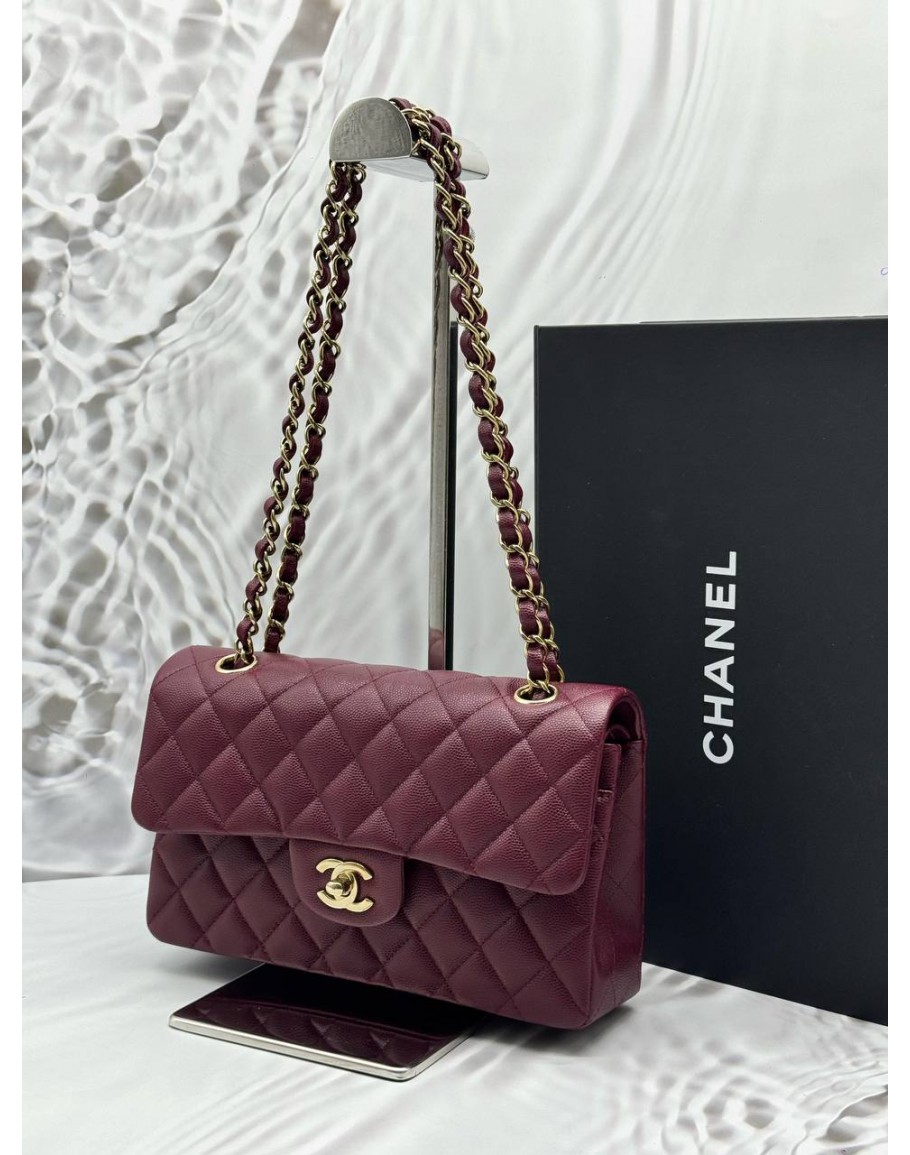 Tags: (UNUSED) 2025 MICROCHIP CHANEL SMALL CLASSIC DOUBLE FLAP BAG IN BURGUNDY CAVIAR LEATHER -FULL SET-