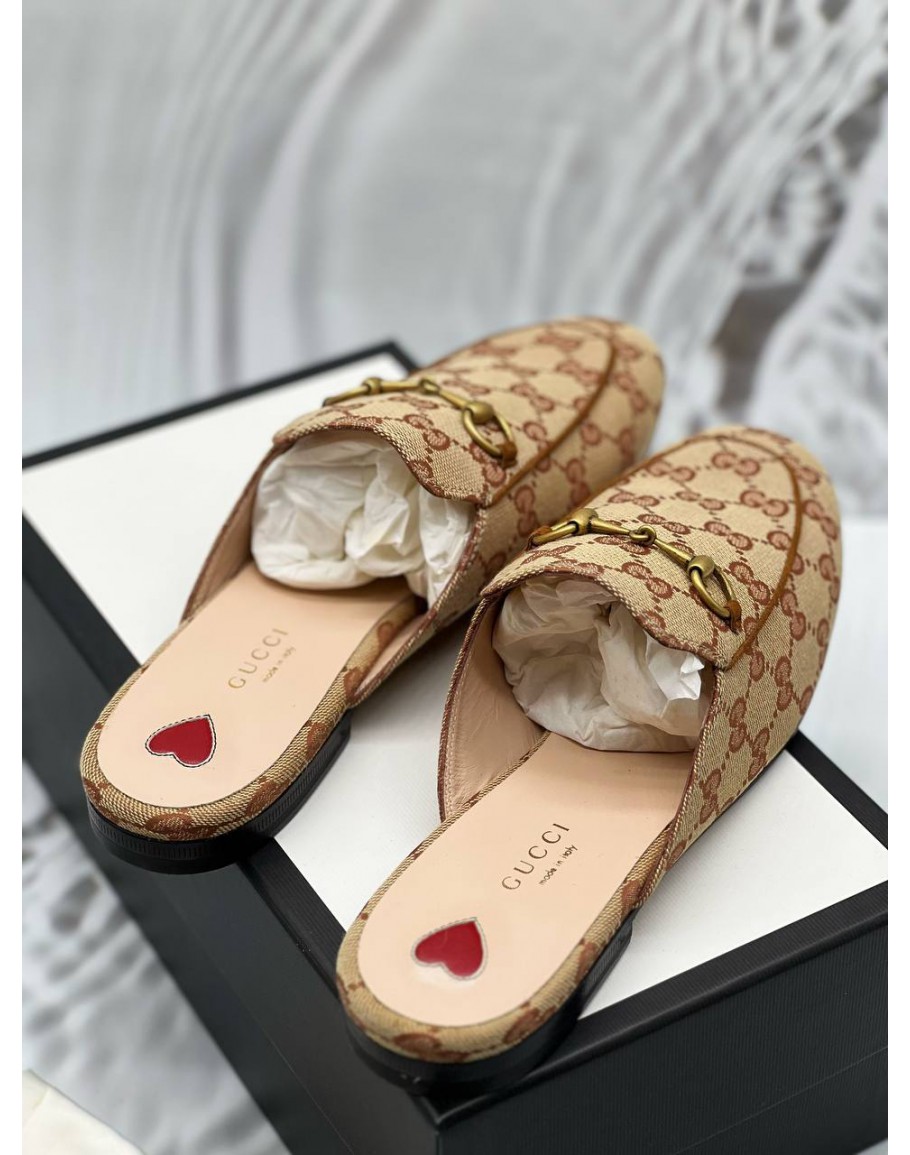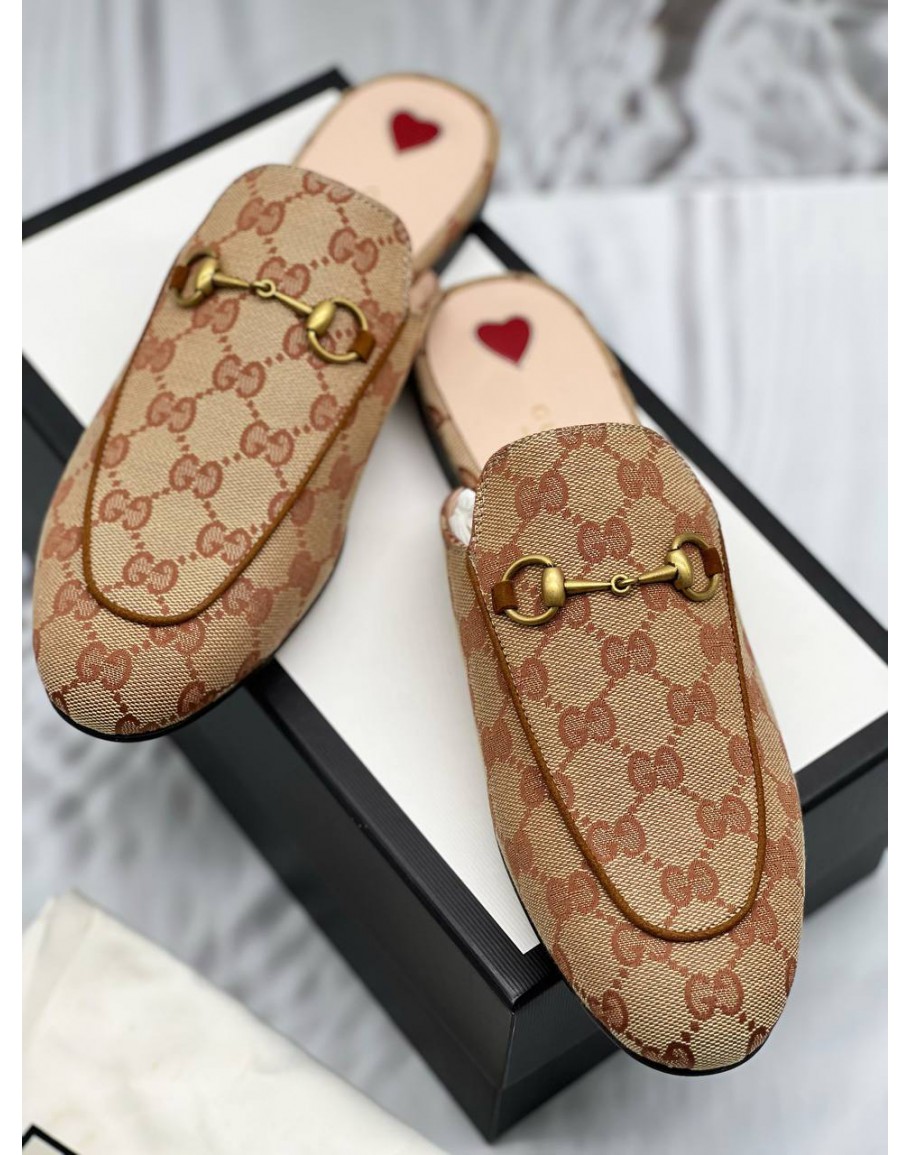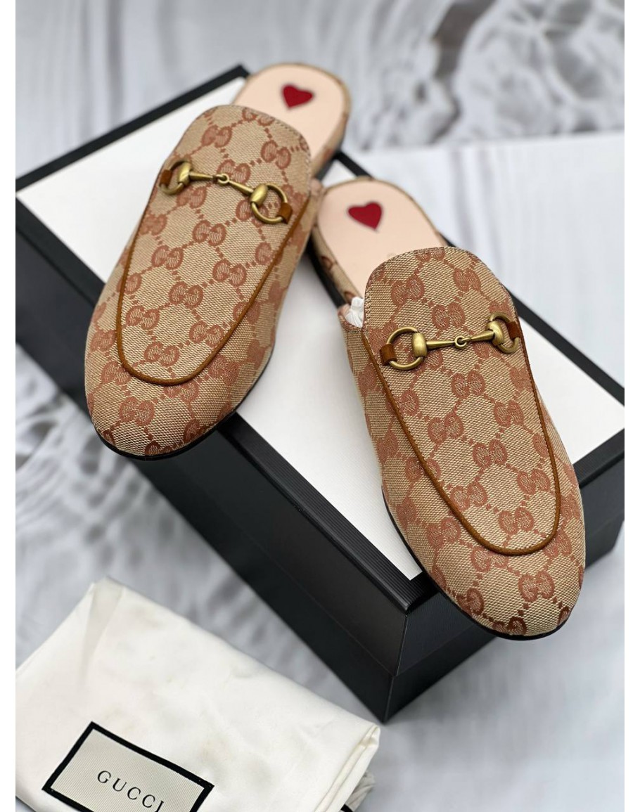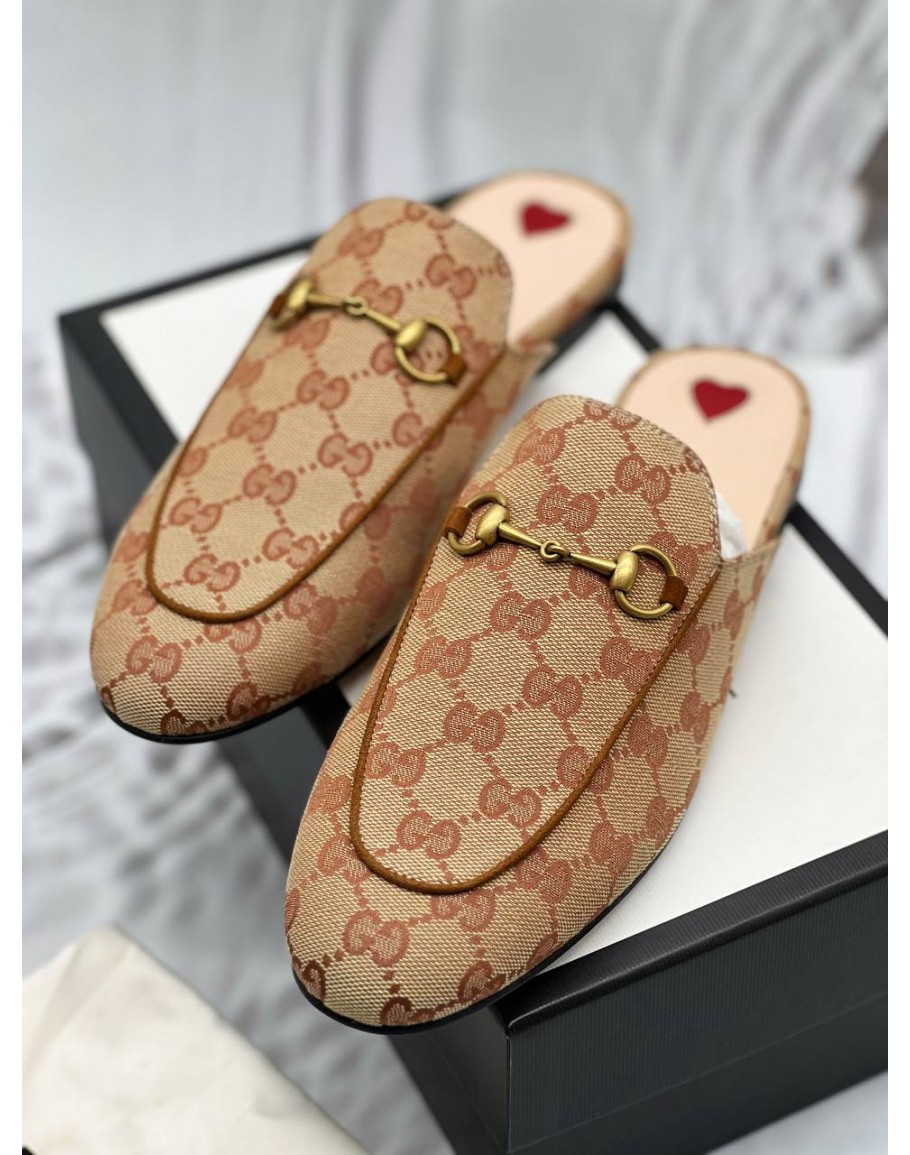 (UNUSED) GUCCI PRINCETOWN HORSEBIT MULES SIZE 40 IN BEIGE GG SUPREME CANVAS -FULL SET-