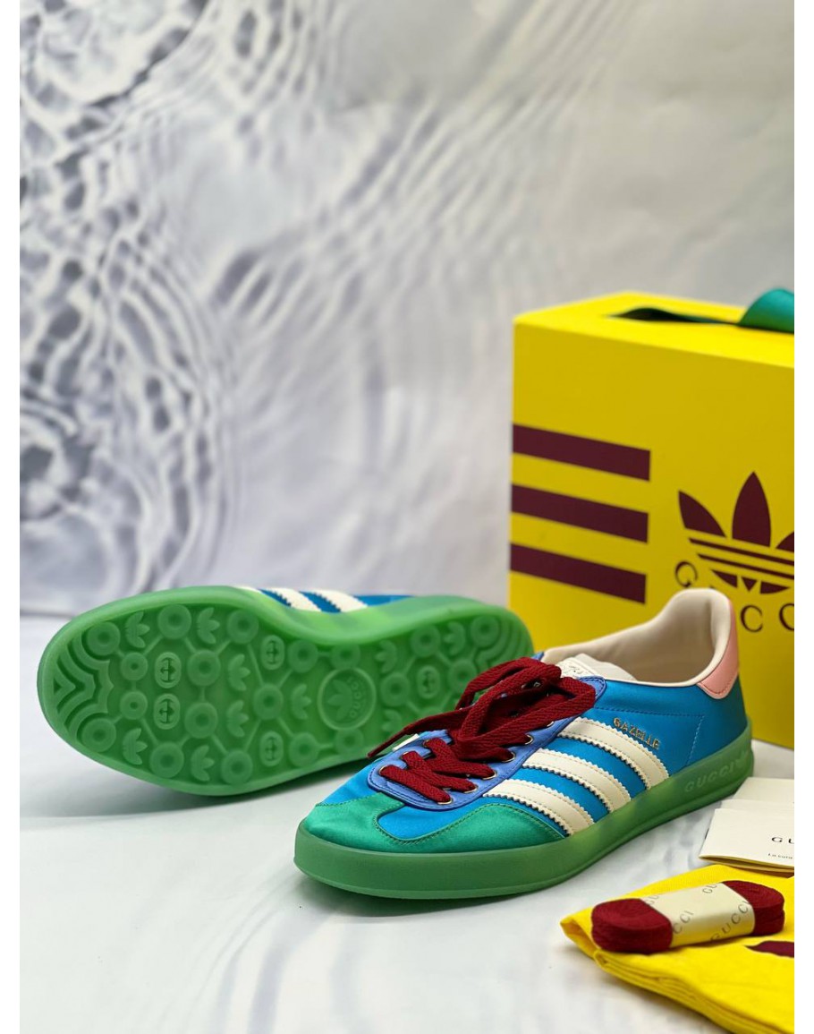 (UNUSED) GUCCI X ADIDAS GAZELLE SNEAKERS SIZE 38.5 IN LIGHT BLUE SILK COLOURWAY -FULL SET-