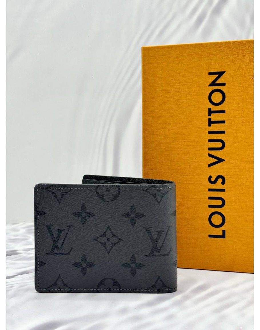 (UNUSED) LOUIS VUITTON SLENDER WALLET IN GREY MONOGRAM ECLIPSE CANVAS WITH BLACK GRAINED CALFSKIN LEATHER