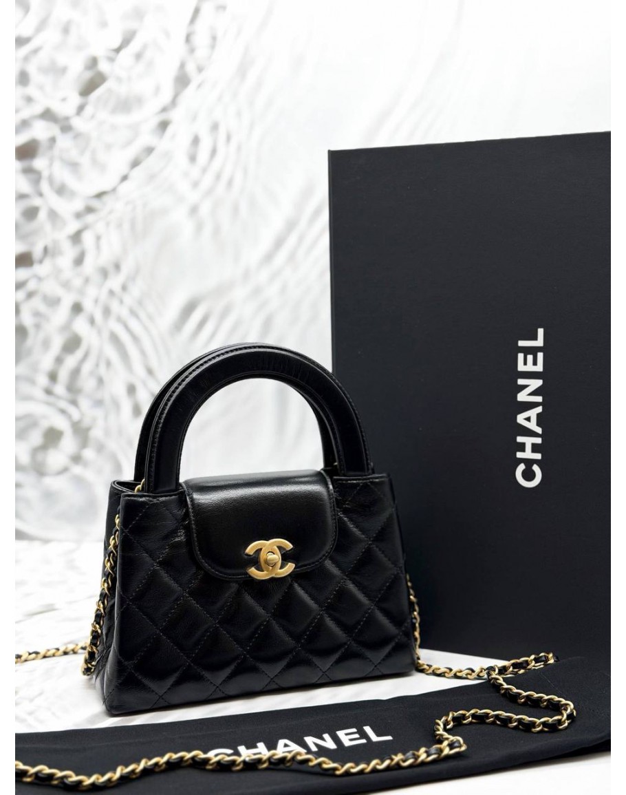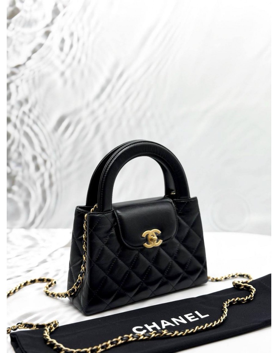 Tags: (UNUSED) MICROCHIP CHANEL MINI KELLY BAG IN BLACK CALFSKIN LEATHER -FULL SET-