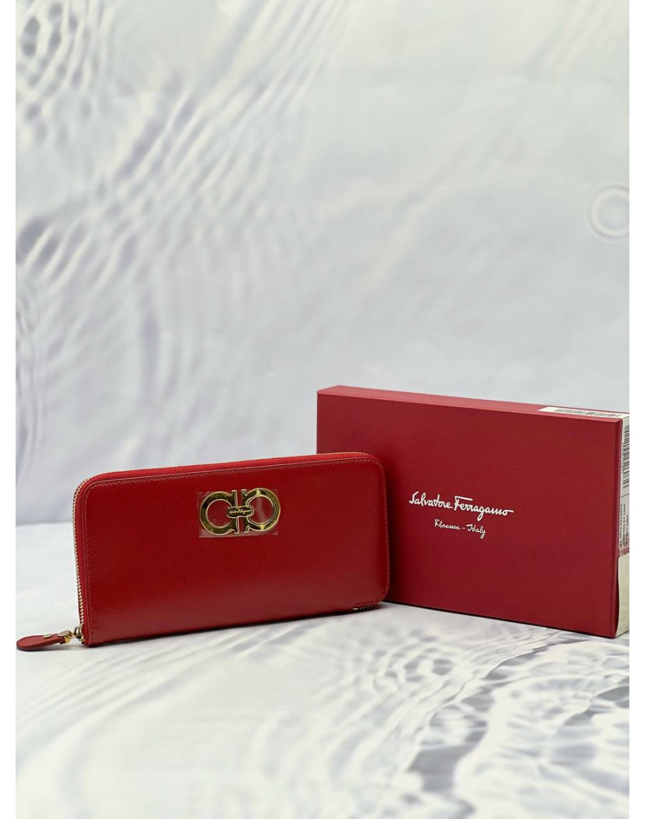 Tags: (UNUSED) SALVATORE FERRAGAMO GANCINI ZIP AROUND LONG WALLET IN RED LEATHER