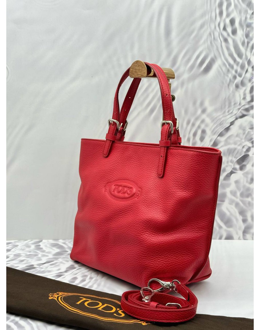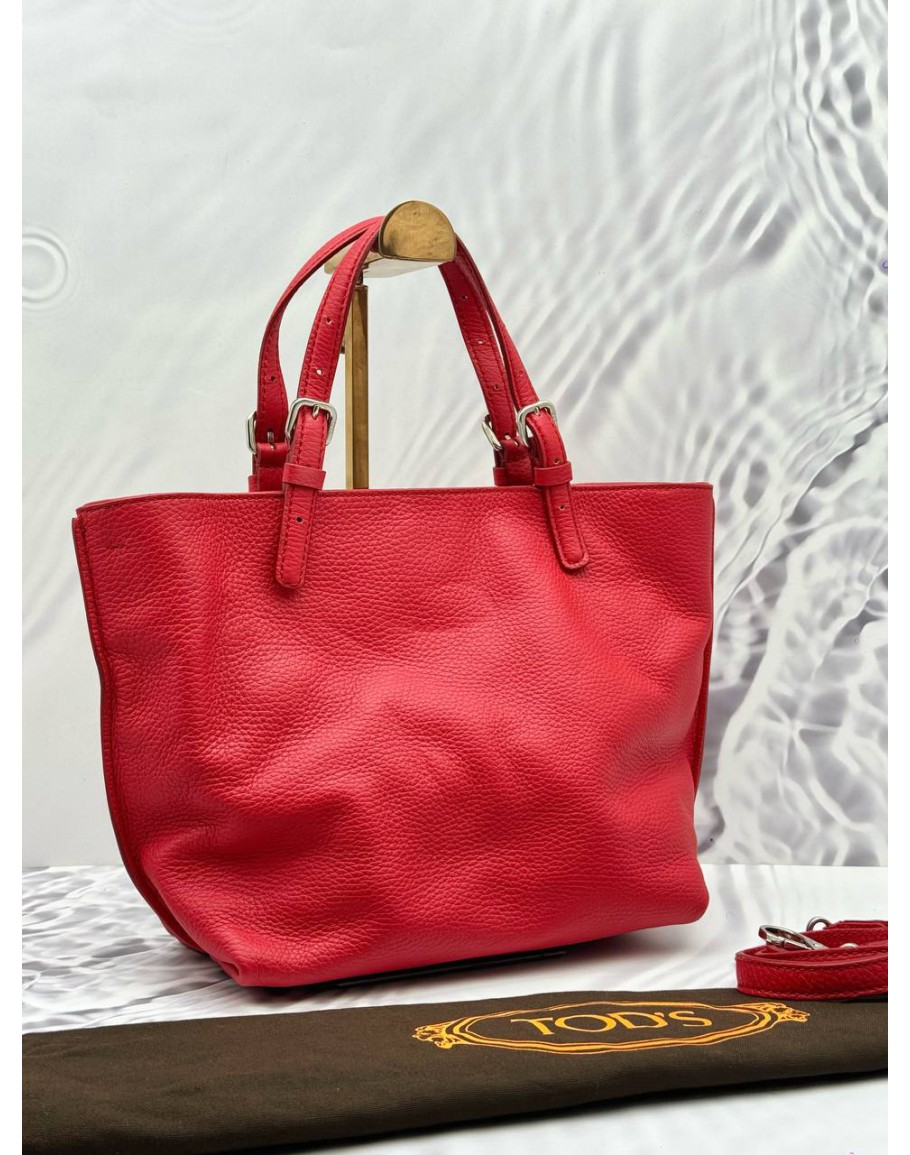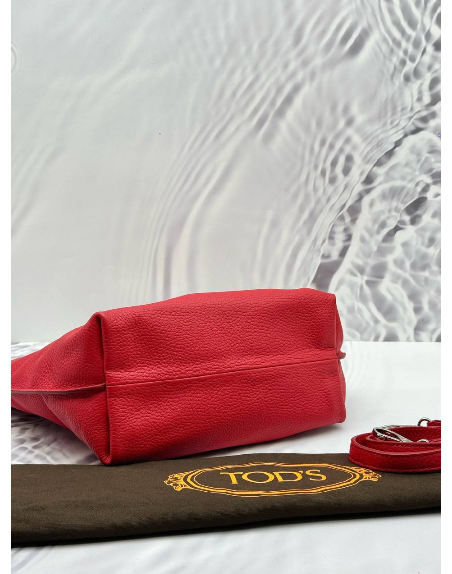 (UNUSED) TOD’S TOTE TOP HANDLE AND SHOULDER BAG IN RED PEBBLED LEATHER